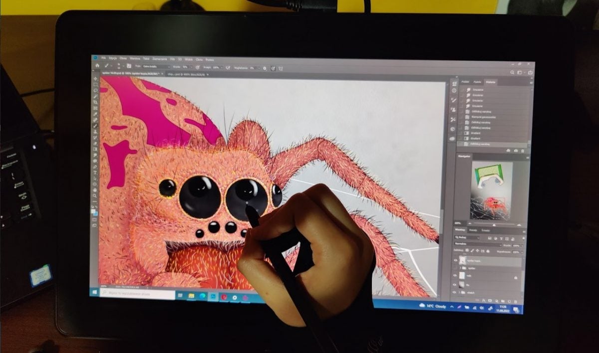 Inne cechy warte wyróżnienia to rozdzielczość Full HD, pokrycie 127% gamy sRGB i 90$ NTSC oraz współczynnik kontrastu 1000:1, co stanowi odpowiednie trio w tej cenie. Podobnie sprawa ma się z teksturowaną powierzchnią ekranu zewnętrznego, a raczej nałożonej na niego wymienialnej folii o matowym wykończeniu, której mikroskopijne nierówności zapewniają lekkie tarcie końcówki pióra, pozwalając lepiej panować na piórem. Czego z kolei brakuje samemu tabletowi? Ewidentnie dodatkowych przycisków, którymi producent mógłby zagospodarować grube ramki dookoła ekranu.