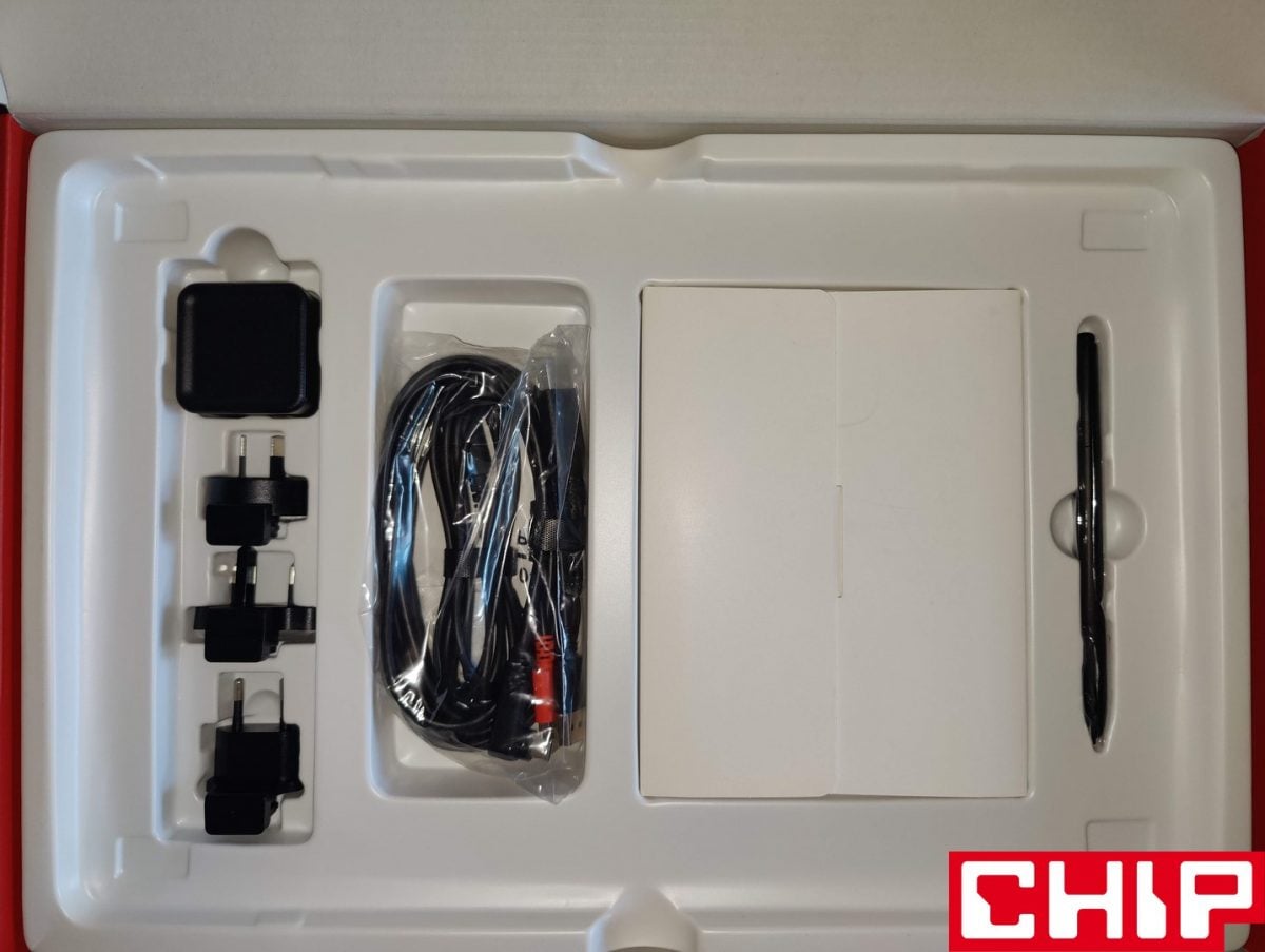 Czego brakuje? Zdecydowanie stojaka dla pióra, w którym moglibyśmy ukryć zarówno wymienne wkłady, jak i narzędzie do ich wyciągania. Szkoda też, że producent nie zadbał o podstawowe dodatkowe wyposażenie, a więc regulowanej podstawki na tablet i pióro oraz przewodu USB-C do USB-C dla kompatybilności z większą liczbą urządzeń (smartfonami i laptopami z Thunderbolt 4). Zasługuje jednak na uznanie za formę przewodu 3w1, którego przewody USB są dłuższe od HDMI (dodają dodatkowe 75 cm do 190-cm przewodu głównego), co pozwala sięgnąć z np. karty graficznej aż na samą górę backplate płyty głównej.