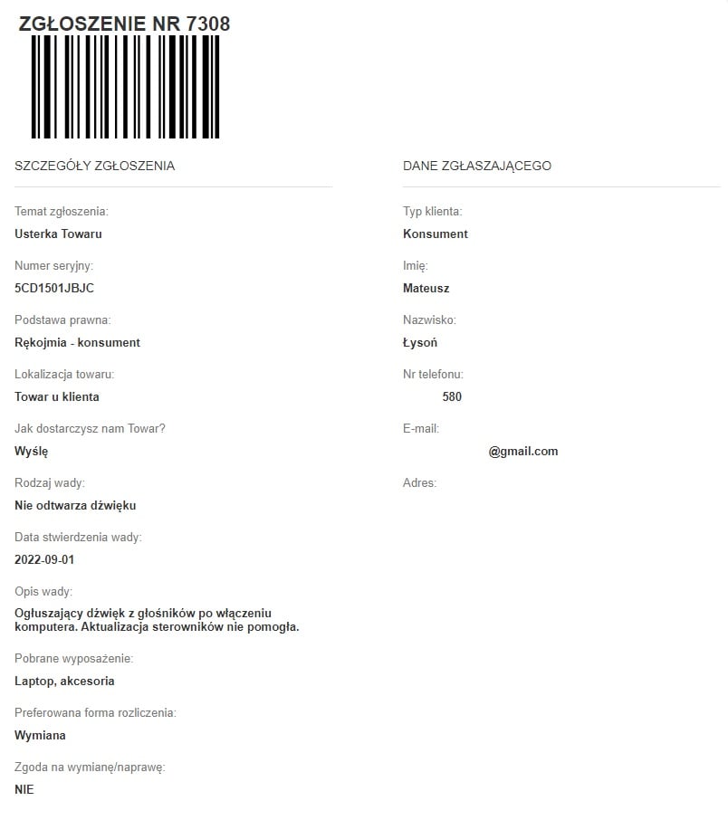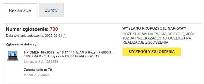 Te finalnie nie poskutkowały, więc postanowiłem stłamsić wewnętrzną ciekawość sprawdzenia problemu na własną rękę i skorzystać z rękojmi, wierząc, że ta przyspieszy proces względem gwarancji. Oj – był to błąd i piszę te słowa 20.09, czyli 20 dni po zgłoszeniu rękojmi i idealnie tuż po 14 dniu, jak sprzęt trafił do sklepu. Przez ten czas infolinię i skrzynkę pocztową sklepu męczyłem zbyt często, jak na mój gust (aż sprawdziłem, czy moje drugie imię to nie Janusz), ale sprzętu potrzebowałem “na już”, więc chciałem się upewnić, czy aby serwis nie podejmie decyzji przed 14-dniowym wskazanym okresem.