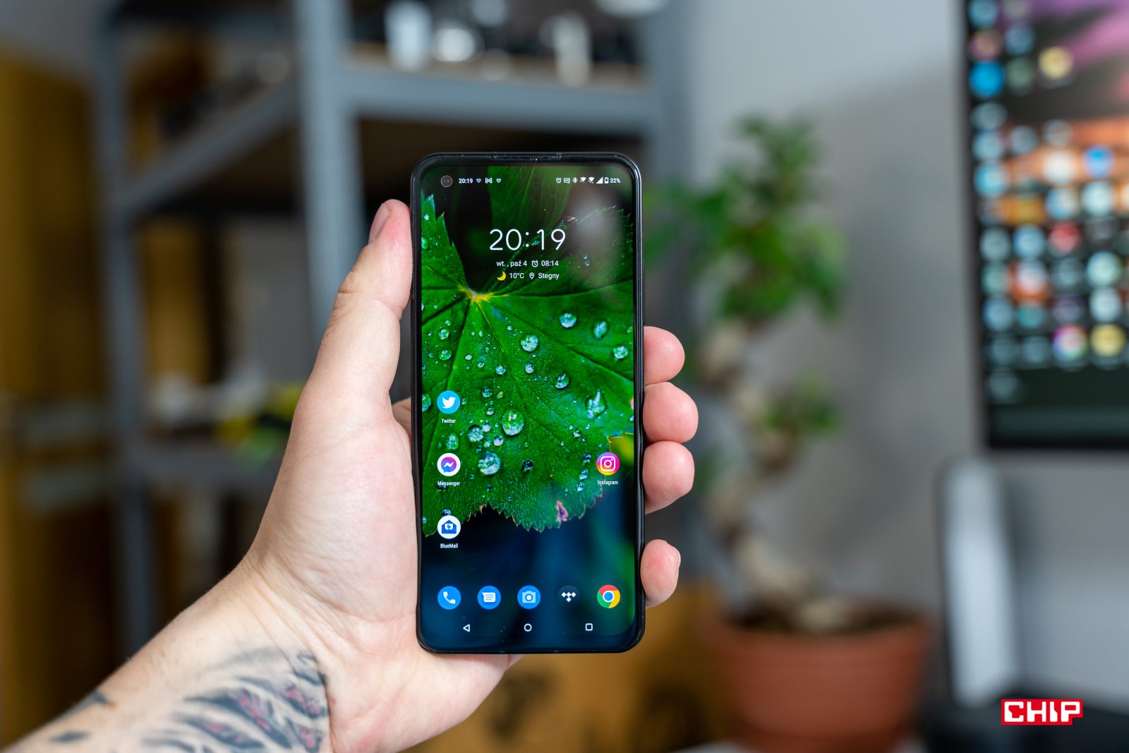 Mały, niezmiennie, jak na dzisiejsze standardy. Mówimy bowiem o 5,9 cala. Otaczają go cienkie ramki, choć są one grubsze niż we wspomnianym Galaxy S22 i iPhonie 13. Ale szybko można przestać je zauważać.