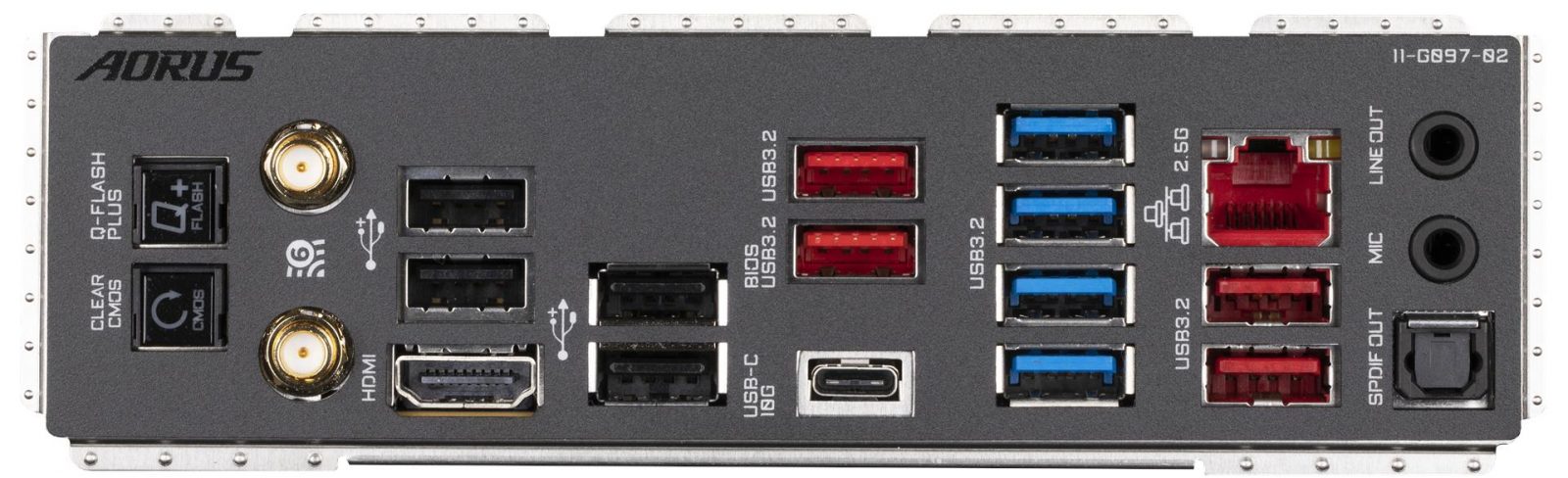 Wiele podobieństw widać też na tyle, czyli wśród złącz na panelu I/O, bo tam znajdziemy dwa złącza antenki dla Wi-Fi 6E, port USB-C, cztery złącza USB-A 2.0, sześć (lub siedem w droższym modelu) USB-A 3.2, 2,5-Gigabitowy Ethernet, zestaw portów audio, z czego droższy model doczekał się optycznego portu w miejscu tradycyjnego Line-Out. Idąc dalej, tańszy model doczekał się przycisku do aktualizacji BIOSu oraz dwa wyjścia wideo (DisplayPort i HDMI), al wielu uzna model droższy za lepszy ze względu na dodatek przycisku do resetowania BIOSu oraz zastąpienia wsparcia HDMI 2.0 i DP 1.4 jednym solidnym HDMI w wersji 2.1, który wspiera rozdzielczość 8K przy odświeżaniu 60 FPS.