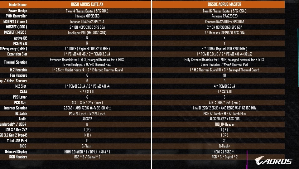 Porównujemy płyty główne Gigabyte Aorus Elite B650 i Aorus Master B650E