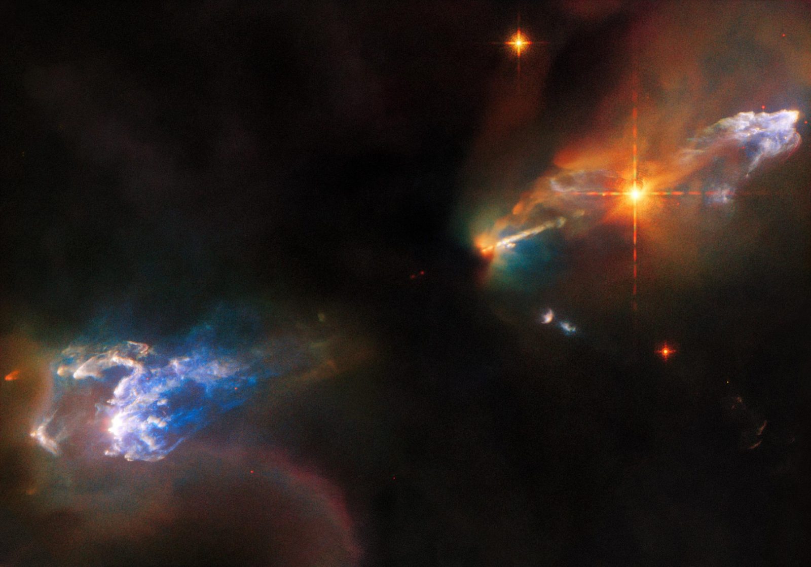Dwa obiekty Herbiga-Haro znajdują się około 1300 lat świetlnych od Ziemi