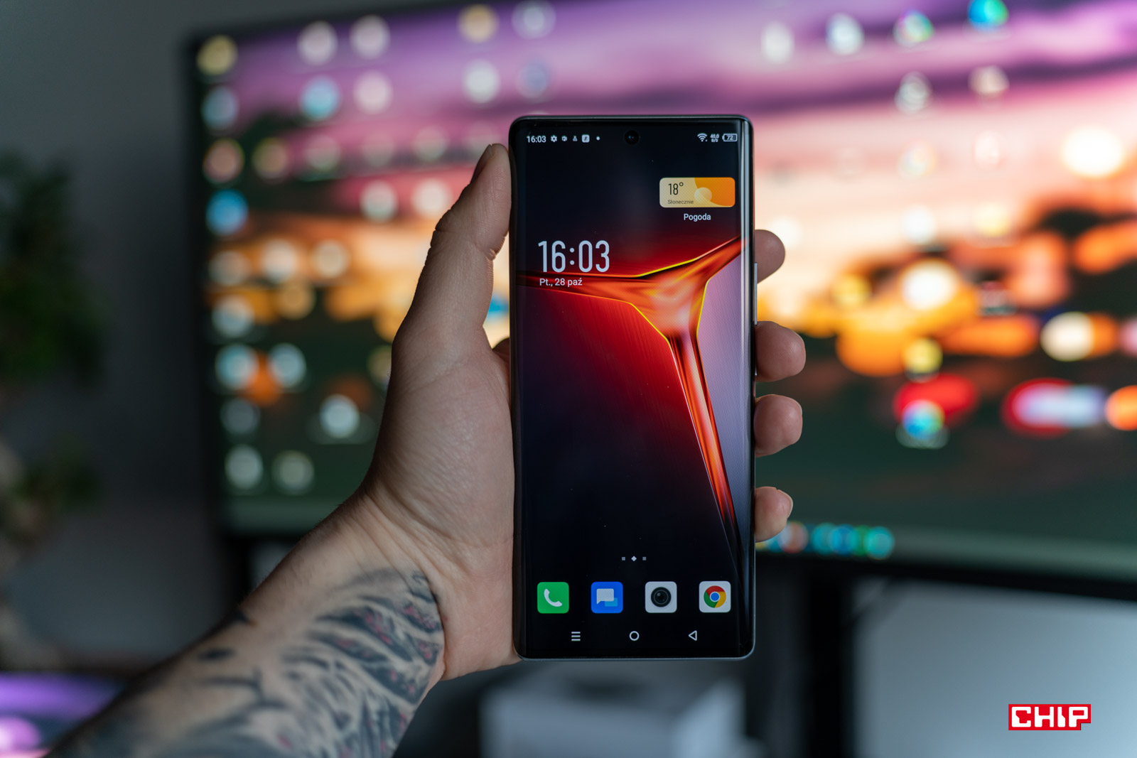 Zakrzywione na bokach ekrany są obecne na rynku już od kilku lat i pełnią wyłącznie wizualną rolę. Ale jak to robią! Przy zachowaniu mniejszych rozmiarów obudowy, sama przekątna jest duża, bo liczona wraz z zakrzywieniami. Cały czas mamy przy tym wrażenie, że obraz kończy się gdzieś za krawędzią ekranu, co jest bardzo efektowne i skutecznie przyciąga wzrok. W Infinix Zero Ultra wyświetlacz jest zakrzywiony pod kątem 71°. To sporo, ale jednocześnie na tyle mało, że możemy skutecznie uniknąć przypadkowego dotknięcia ekranu na krawędziach.