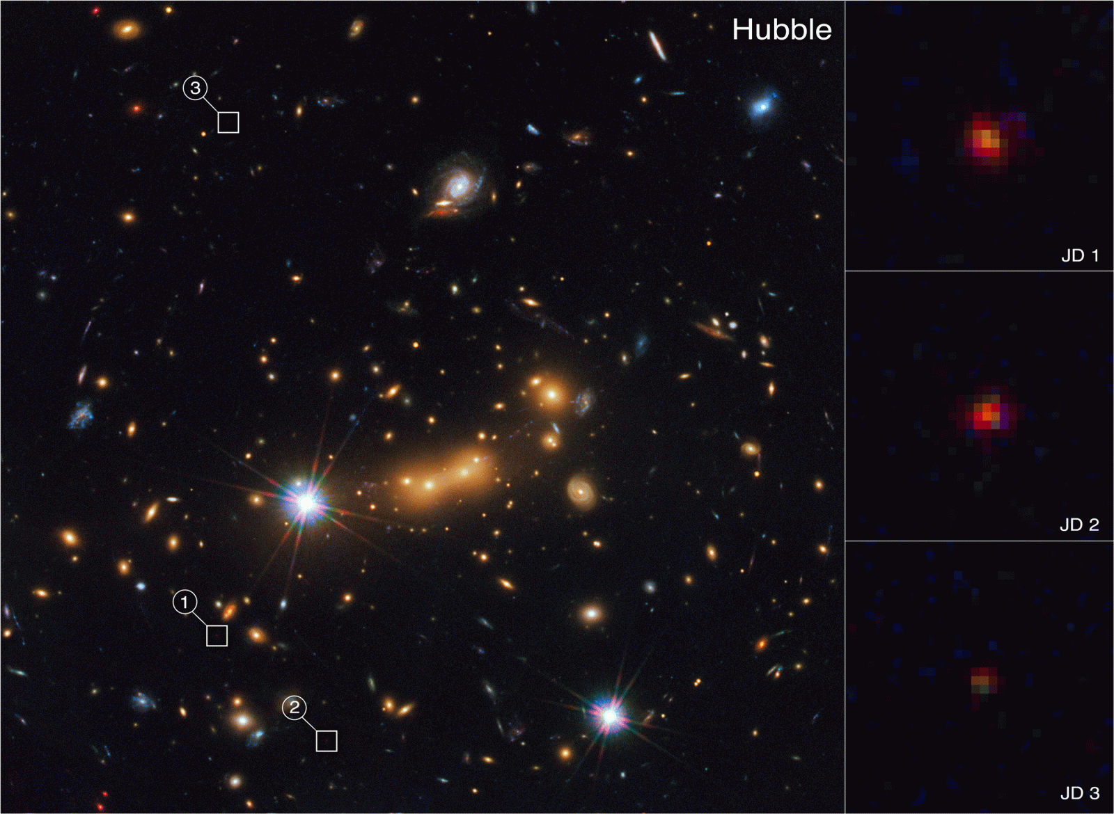 W praktyce oznacza to, iż obiekty znajdujące się za gromadą ulegają powiększeniu. To korzystna cecha z punktu widzenia obserwacji, dlatego astronomowie wykorzystali ją, by zajrzeć w jeszcze odleglejsze obszary wszechświata. W takich właśnie okolicznościach doszło do odkrycia MACS0647-JD. Wtedy jednak, około dziesięciu lat temu, główną rolę odegrał nieco starszy od JWST Kosmiczny Teleskop Hubble’a.