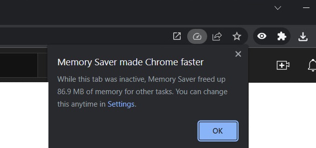 Dostęp do tego uzyskamy poprzez funkcję “Memory Saver”, która w Chrome otrzyma dedykowany przycisk na pasku narzędzi. Po jego kliknięciu pojawi się małe okienko z rzeczywistymi pomiarami co do zużycia pamięci oraz odnośnikiem do ustawień wydajności. Więcej nowości mogą wypróbować użytkownicy Chrome Canary, czyli wersji deweloperskiej Chrome’a, która pozwala np. na włączanie lub włączanie oszczędzania pamięci i dodawanie konkretne strony do listy wyjątków.
