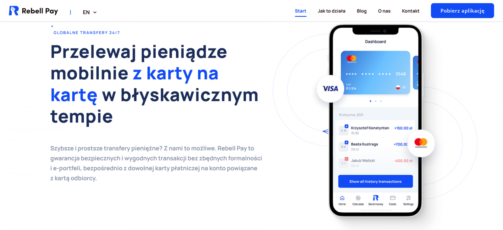 Istotą działania Rebell Pay są są krajowe i międzynarodowe przelewy. Można je wykonywać z karty na kartę (zarówno Visa, jak i Mastercard). Transakcje o wartości do 250 euro miesięcznie są pozbawione jakiejkolwiek prowizji dla operatora. Jedyna dodatkowa opłata to niewielki spread walutowy.
