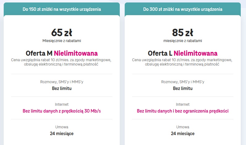 Wybierając jeden z poniższych abonamentów z nielimitowanym Internetem 5G ceny smartfonów są niższe.