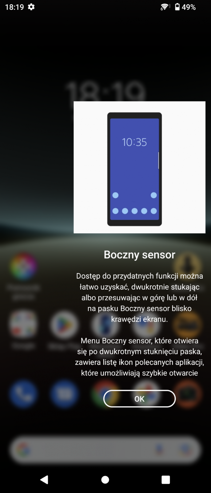 Pewną oryginalność stanowi „Panel Boczny” aktywowany przez dwukrotne stuknięcie w rant urządzenia, skrywający najczęściej używane aplikacje i skróty z możliwością otwarcia ich w samym oknie. Mamy także odpowiednik funkcji „Always On Display” o nazwie „Aktywny wyświetlacz” z opcją personalizacji oraz wspominaną już fizyczną diodę powiadomień.