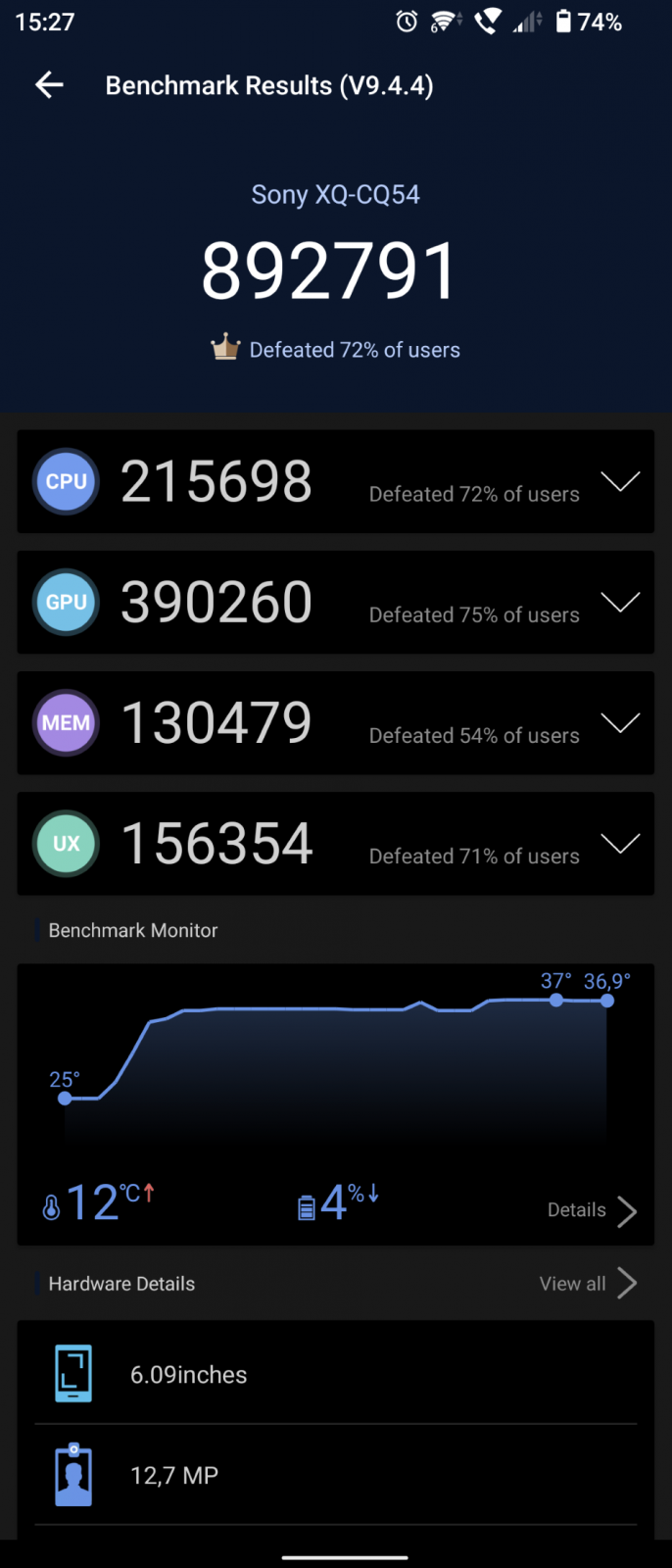 Poza faktem osiągania przesadnych temperatur w przypadku dłuższych sesji gamingowych (choć bez widocznego spadku wydajności) i w wymagających testach syntetycznych, Sony Xperia 5 IV działał perfekcyjnie i zachowywał pełną płynność pracy. Więc jeśli nie jesteśmy zapalonymi graczami, to w codziennych zadaniach praktycznie nie uświadczymy niekomfortowych temperatur, optymalizacja stoi na bardzo wysokim poziomie.