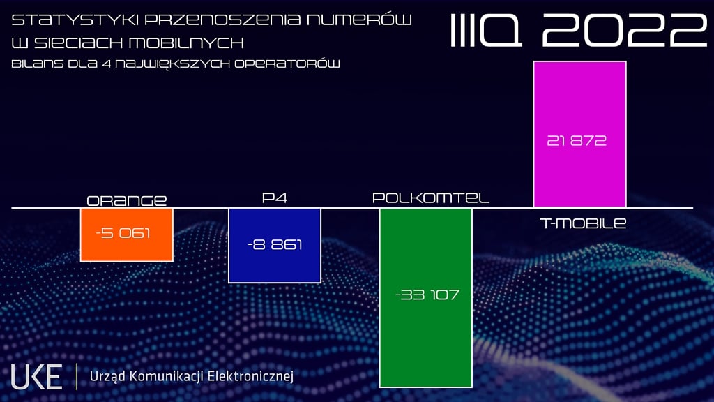 W wyniku przenoszenia numerów Orange Polska stracił ponad 5 tys. użytkowników kart SIM, Polkomtel (operator sieci Plus) ponad 33,1 tys., a P4 (operator sieci Play) ponad 8,8 tys. użytkowników kart. W sieciach stacjonarnych w III kw. przeniesiono o 9 tys. mniej numerów niż w II kwartale.
