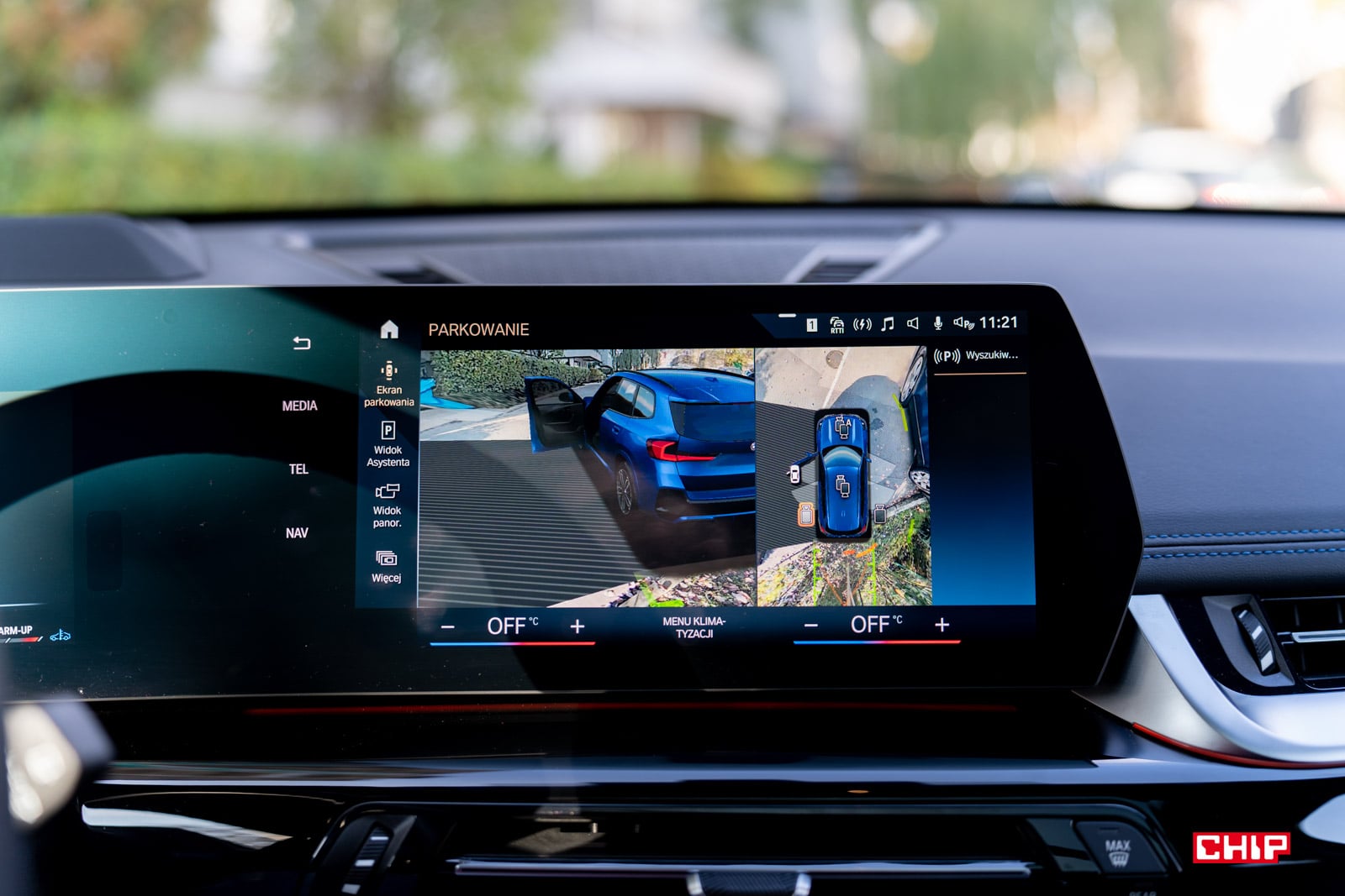 BMW to niezmiennie wzór, jeśli chodzi o działanie systemu kamer i asystenta parkowania. Obraz jest genialnej jakości, do dyspozycji mamy szereg widoków z przodu, z tyłu, dookoła, dodatkowo kamera z przodu i z tyłu wychyla się wraz z obrotem kierownicy. A na deser, zawsze możemy podejrzeć obraz z kamer z poziomu aplikacji mobilnej My BMW. Niedawno ktoś spuścił nam paliwo z testowanej Dacii Sandero, więc chętnie korzystaliśmy z tej opcji. Asystent parkowania działa genialnie. Śmiało można zaryzykować, że potrafi nie raz zaparkować lepiej niż kierowca i to w miejscu, do którego na pierwszy rzut oka nie da się wjechać. A później jeszcze sam z niego wyjedzie. Ok, głupieje na pustym parkingu, wtedy potrafi wjechać krzywo, nie trafić w linie, ale uznałbym, że on tu jest od zadań specjalnych i tam sprawdza się najlepiej.