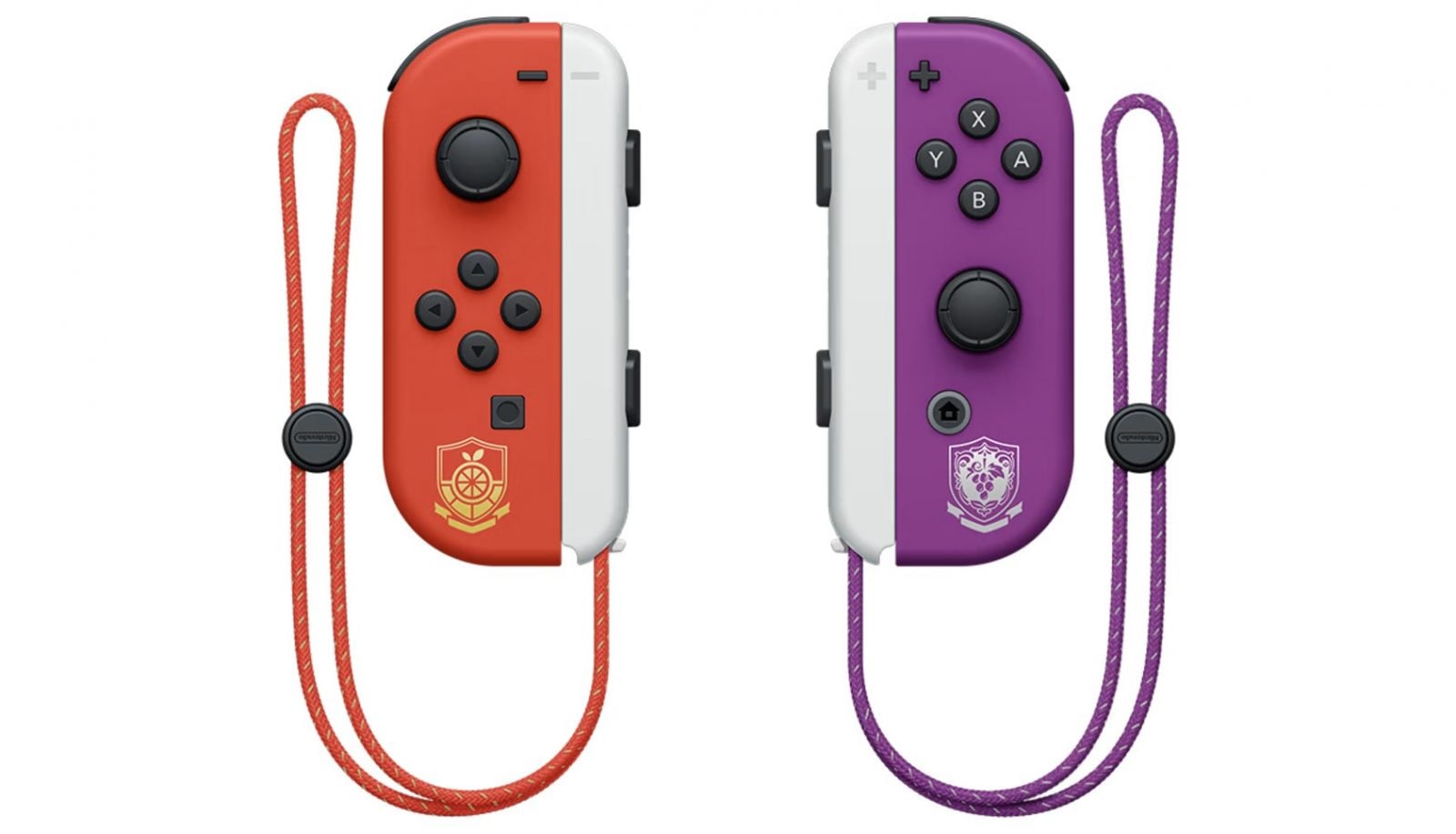 Sam konsola z pewnością będzie cieszyć oko każdego fana. Utrzymana w fioletowo-czerwonej kolorystyce została z tyłu ozdobiona ilustracjami trzech startowych Pokemonów ze Scarlet & Violet — Sprigatito, Fuecoco i Quaxly. Wprawne oko wypatrzy także symbole reprezentujące poszczególne postacie i lokacje z regionu Paldea. Lewy kontroler jest czerwony i to właśnie on reprezentuje Scarlet, co dodatkowo podkreśla herb ekskluzywnej lokalizacji Akademii Naranja. Prawy, fioletowy kontroler dostał logo Akademii Uva i oczywiście symbolizuje Violet.