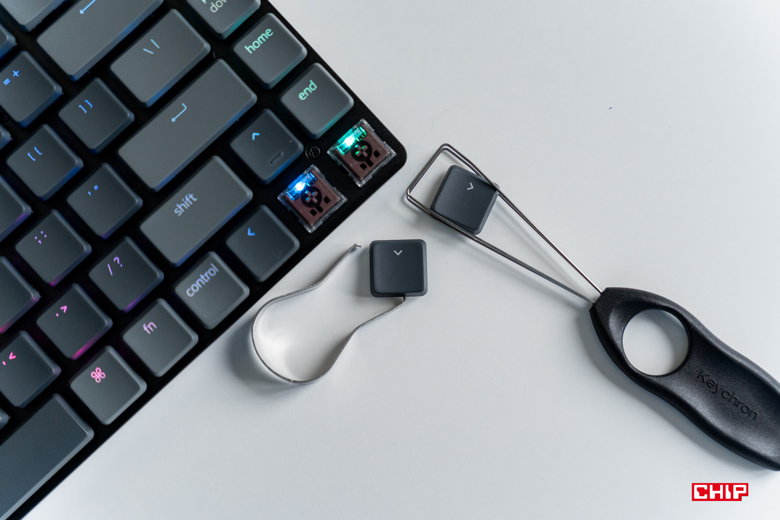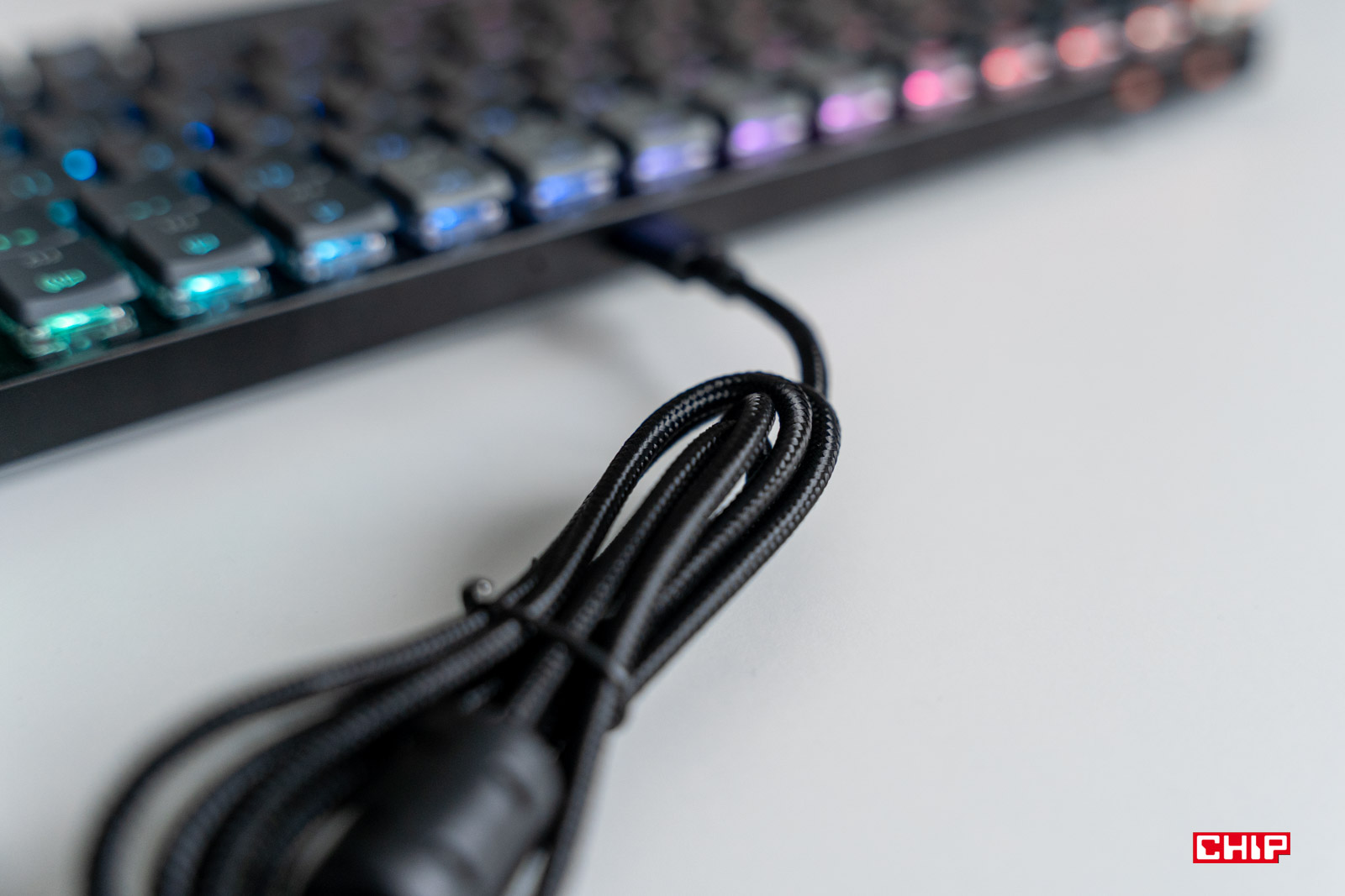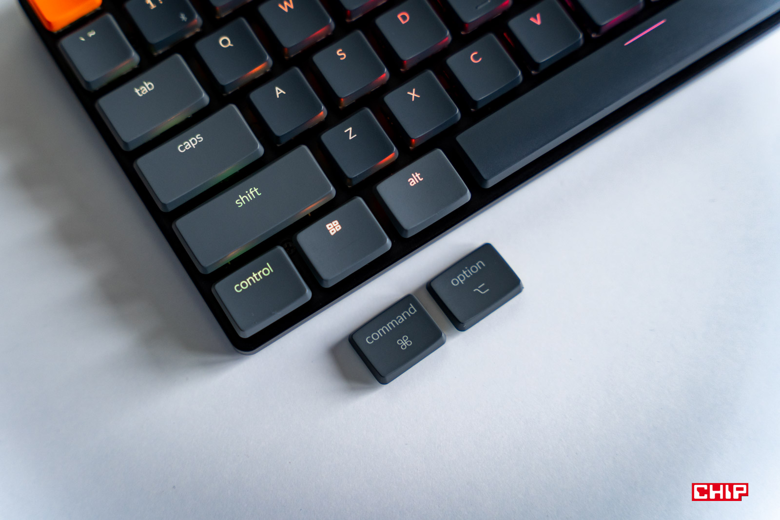 W zestawie znajdziemy bardzo dobrej jakości pleciony kabel USB-A – USB-C, dwa klucze ułatwiające wymianę klawiszy oraz dodatkowe klawisze, dzięki którym możemy wizualnie dopasować układ pod komputery MAC lub urządzenia z Windowsem.