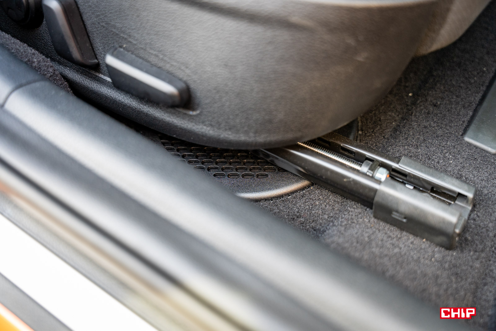 Tunel środkowy jest bardzo duży, ale z przodu ma to swoje zalety. Można wygodnie oprzeć o niego kolano, mamy dzięki niemu szeroki podłokietnik i spory schowek pod nim.