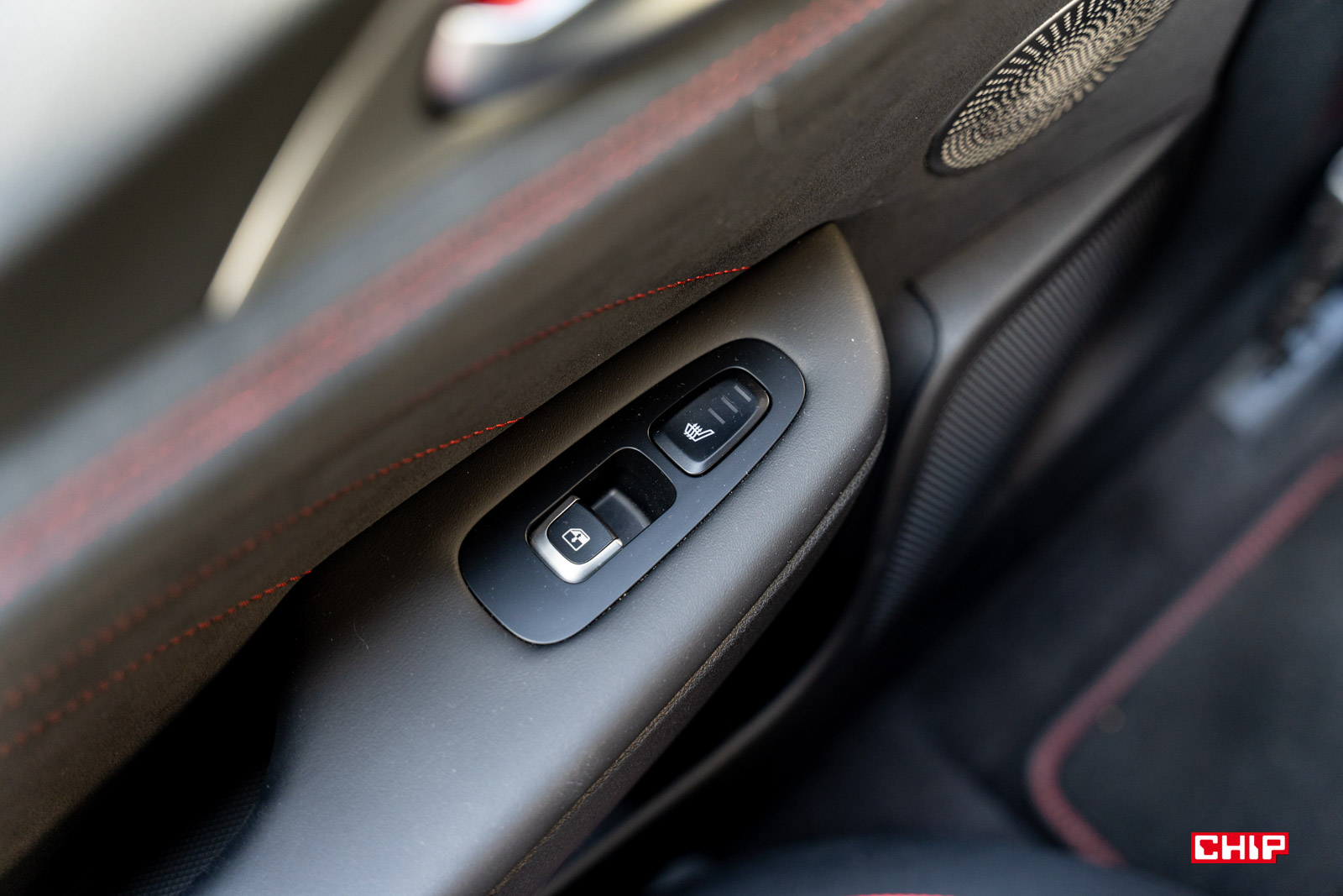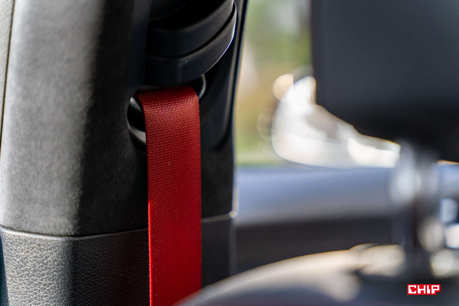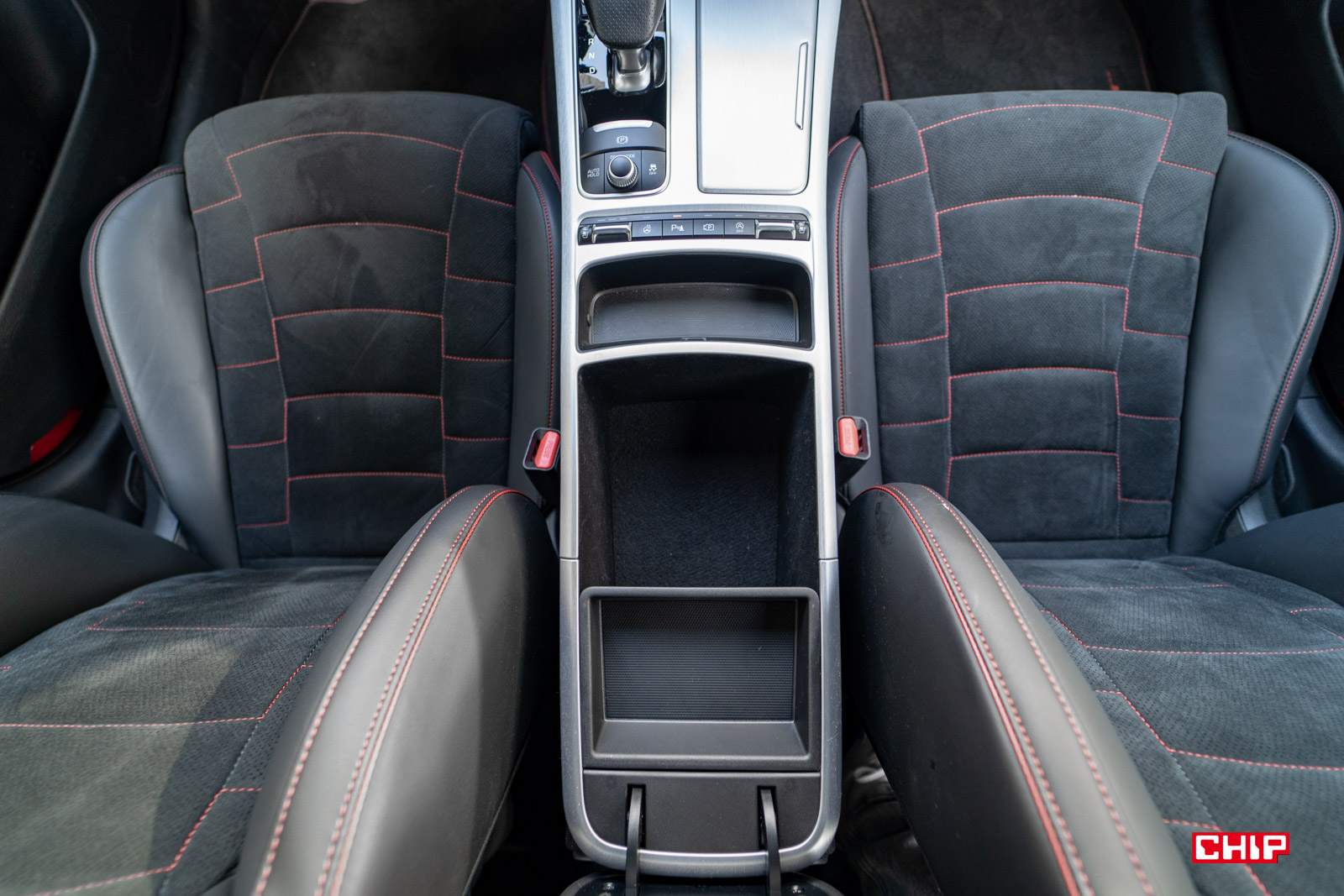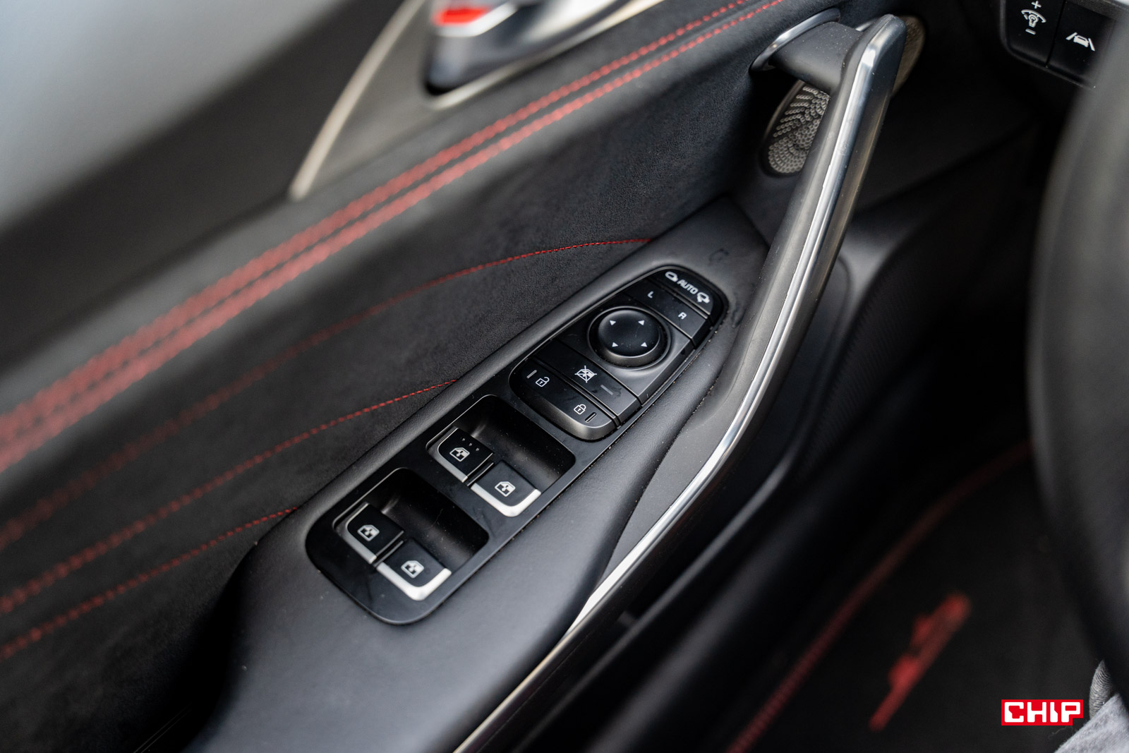 Wnętrze jest świetnie wykonane i co najważniejsze, tu prawie wszystko jest w standardzie. Jak choćby alcantara na desce rozdzielczej, czy czerwone pasy bezpieczeństwa. Za takie pasy w przypadku niektórych marek trzeba dopłacić kilka tysięcy złotych. Pochwalić trzeba koniecznie ograniczenie do minimum plastików piano black. Bardzo dobre wrażenie robią aluminiowe wstawki na tunelu środkowym. Do tego zamykanie uchwytów na napoje działa tak satysfakcjonująco miękko i płynnie, że można siedzieć i tak bez końca otwierać i zamykać, otwierać…
