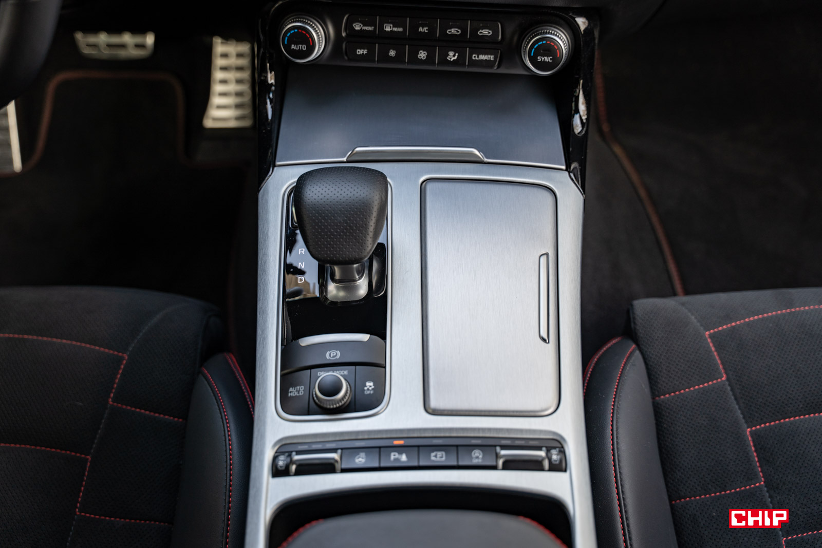 Sportowe auta z tak ogromnym tunelem środkowym zazwyczaj są, może nie klaustrofobiczne, ale niezbyt przestronne. Stinger jest tego kompletnym przeciwieństwem, bo w środku mamy bardzo dużo miejsca i dotoczy to praktycznie każdego podróżującego. O ile założymy, że podróżują cztery osoby. Ale do tego zaraz wrócimy.