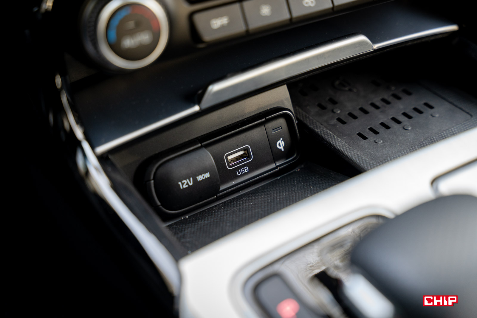 We wspomnianym pakiecie Prestige Line dostaniecie też system kamer 360 stopni. Macie więc obraz pojazdu z góry, możecie też swobodnie przełączać się pomiędzy poszczególnymi kamerami. Pisaliśmy o tym przy testach innych modeli Kii, ale warto powtórzyć, że mamy tutaj do czynienia z wysokiej jakości obrazem, dzięki któremu nie ma ryzyka uszkodzenia lakieru, czy wcześniej wspomnianych felg o jakiekolwiek przeszkody. Dodatkowym argumentem przemawiającym za pakiet jest bezprzewodowa indukcyjna ładowarka do smartfonu.