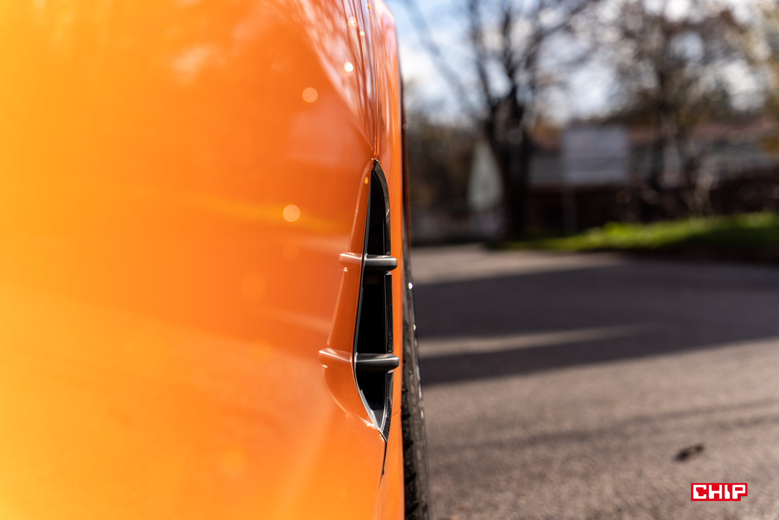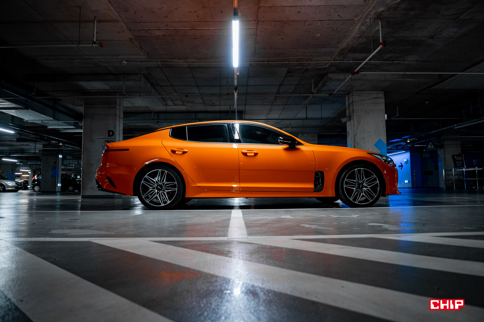 Kto kupuje Stingera po to, żeby się nie wyróżniać? Odpowiedź: nikt. Ta linia jest stworzona do przyciągania uwagi, nie próbuje subtelnie dać nam do zrozumienia co potrafi ten samochód, woli nam to wykrzyczeć w twarz. Po co więc mielibyśmy ograniczać ją nudnymi kolorami? Jasne, możemy kupić białą, czarną, szarą, tylko po co? Po chować te wszystkie detale pod czarnym, czy szarym lakierem? Wygląda świetnie w czerwieni, ale spójrzcie na ten pomarańcz na zdjęciach…. Neon Orange, kolor wprost stworzony dla Stingera. Podkreśla każdy detal tej potężnej, mięsistej sylwetki. Sylwetki, która pozostaje w pamięci.