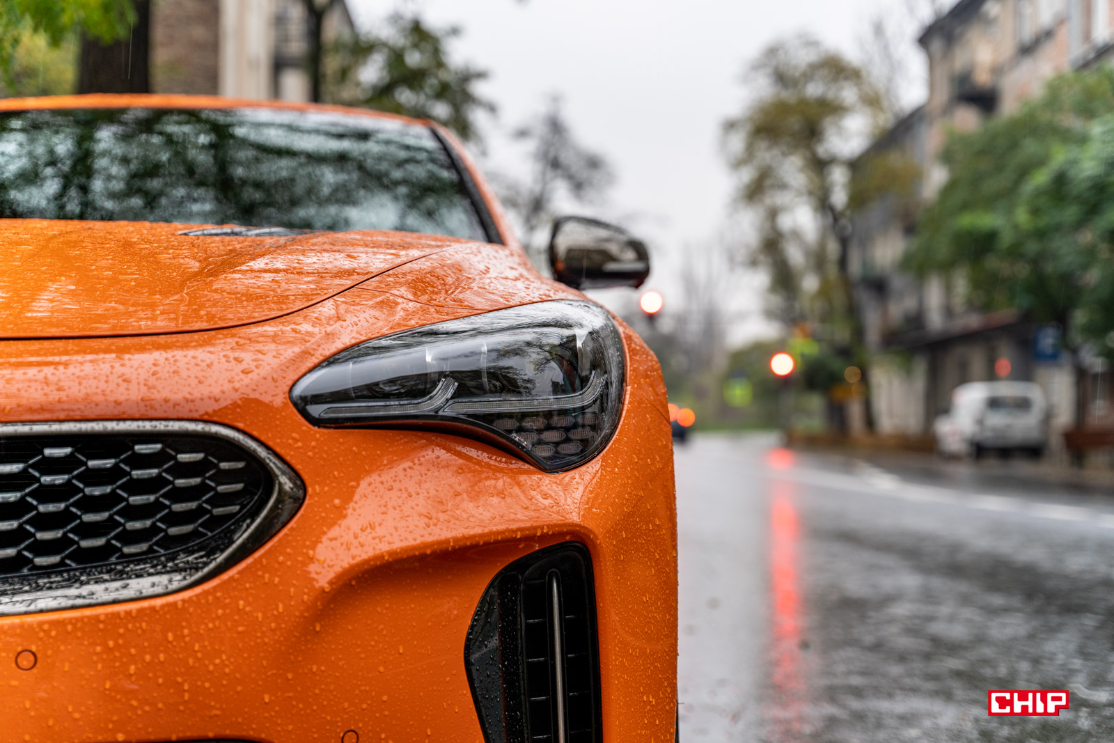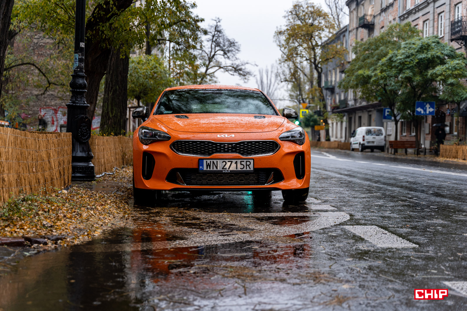 Bardzo zalecam to skupienie, bo chociaż wyposażony w elektronicznie sterowany napęd na wszystkie koła, Stinger potrafi być narowisty. Nie mówię tutaj o jeździe w trybie Sport+, kiedy cały układ jest ustawiony w trybie sportowym i działa bez kontroli trakcji, nawet podczas jazdy w trybie Comfort auto potrafi być wyrywne. Przyznaję, że pogoda nie dopisała i większość testu odbyła się przy akompaniamencie rzęsistego deszczu, jednak byłam nieco zaskoczona tym, jak łatwo auto wpadało w lekką podsterowność podczas ruszania. Nie było to nic z czym przeciętny kierowca nie byłby sobie w stanie poradzić, poza tym samochód sam z niej wychodził, jednak warto być na to przygotowanym.