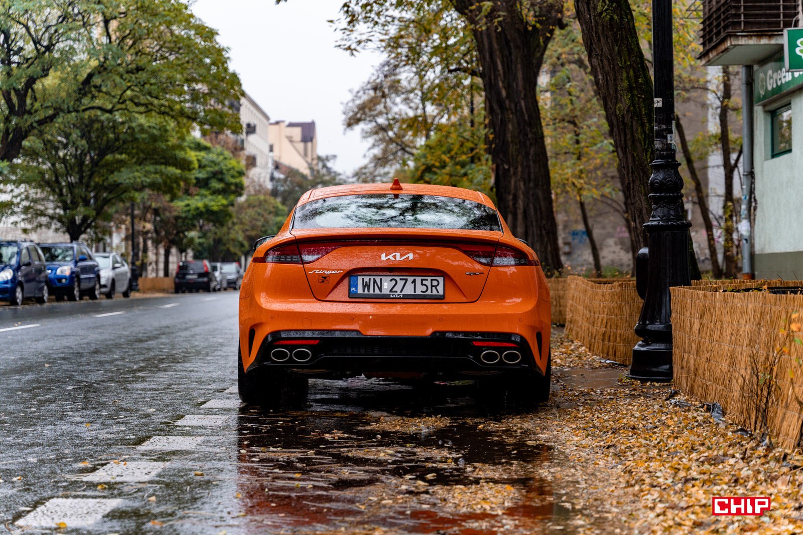 Skoro już o Eko mowa, uprzedzam z góry, nie macie co liczyć na cuda, jeśli chodzi o spalanie. Ten silnik daje mnóstwo radości, ale tylko naiwniak będzie po nim oczekiwał niskiego spalania. W mieście, przy dużym natężeniu ruchu spalanie wyniosło 13,9 l/100 km, na ekspresówce (ograniczenie do 120 km/h) było to 9,1 l/100 km, a na autostradzie (do 140 km/h) – 10,7 l/100 km. Chcieliśmy też zmierzyć go na drodze krajowej. Spalił 10,2 l/100 km, jednak muszę zaznaczyć – był tłok, trzeba było co chwila przyspieszać i zwalniać, więc pomiar nie jest szczególnie miarodajny. Ponieważ jednak na co dzień każdy z nas styka się z takimi warunkami, warto o tym wspomnieć. Czy Stinger pali dużo? Patrząc na same cyfry, tak. Jeśli jednak pomyślimy o tym, jaki silnik w nim siedzi, ile waży i na co pozwala, śmiem twierdzić, że nie, nie są to wartości zatrważające. Jeśli ktoś szuka auta oszczędnego, to trochę nie ten adres.