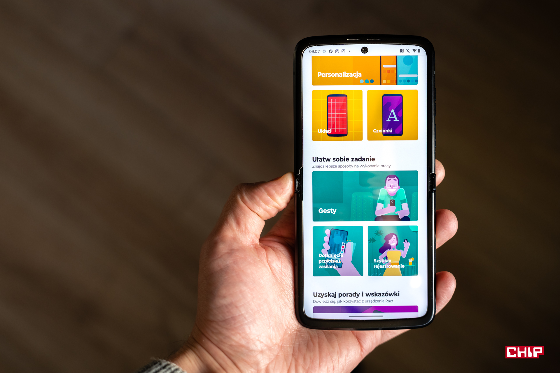Równie pozytywne wrażenie robi obsługa telefonu na głównym ekranie. Z jednej strony można zarzucić Motoroli, że nie wykorzystała potencjału telefonu z klapką nigdzie prócz dzielonego interfejsu aparatu. To obiektywnie słuszny zarzut. Jednak ani razu przez trzy tygodnie testów nie pomyślałem, że chciałbym, aby interfejs lepiej dostosowywał się do składanego ekranu. Za to bardzo często myślałem „wow, chciałbym, aby każdy telefon z Androidem działał tak, jak ta Motorola”.