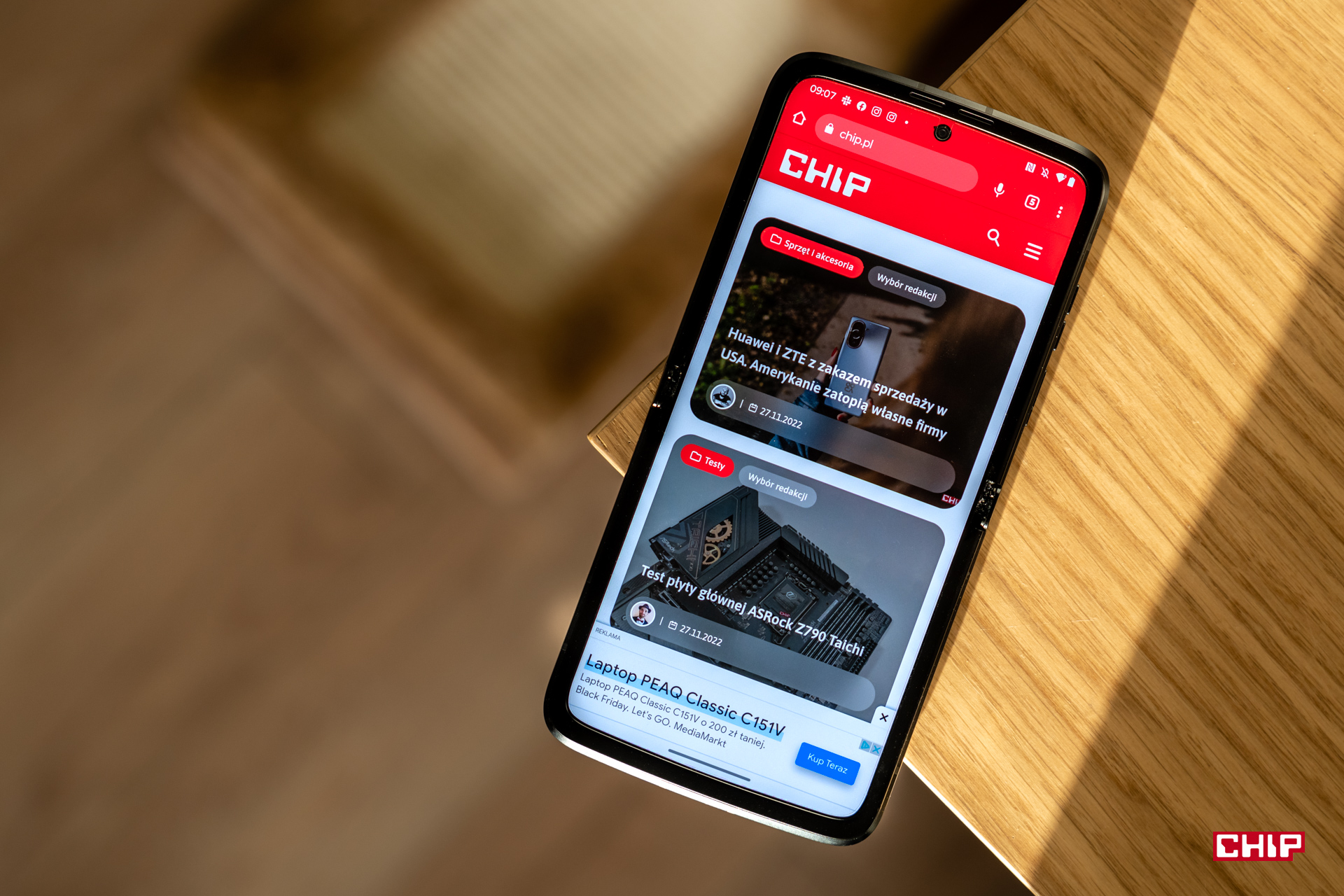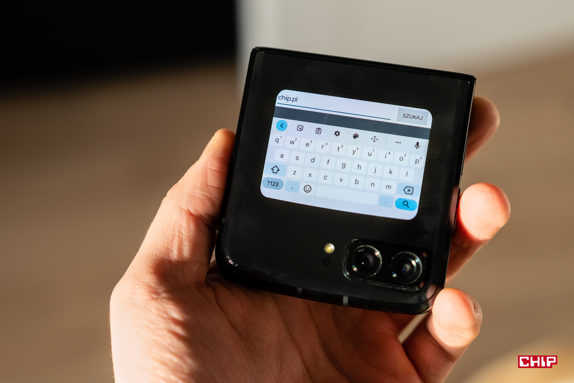 Tymczasem RAZR 2022 ma absurdalnie szeroki ekran, szerszy nawet od Galaxy S22 Ultra czy iPhone’a 14 Pro Max. Ma to wadę w postaci dość sporej bryły telefonu, gdy ten jest zamknięty; wyraźnie odznacza się w kieszeni i nie mieści się w obcisłych jeansach. Zaletą tego rozwiązania jest jednakże komfort obsługi, o ile oczywiście mamy dość długie palce. Ja mam i na wąskim ekranie Flipa pisze mi się nieco topornie, zaś na Motoroli RAZR 2022 pisało mi się wygodniej niż na jakimkolwiek smartfonie ostatnich miesięcy.