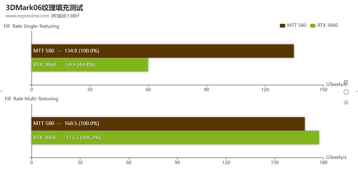 W przypadku bardziej rzeczywistych testów, MTT S80 udowodnił, że jest w stanie sprostać e-sportowym grom w rozdzielczości 4K, zapewniając płynność ponad 100 klatek na sekundę. Przykładowo zapewniał 128 FPS w League of Legends, 165 FPS w CrossFire oraz 87 FPS w Street Fighter IV, pożerając średnio 210 watów przy obciążeniu i niebywałe 114 watów w spoczynku, co jednak ma zostać poprawione w aktualizacjach. Należy jednocześnie podkreślić, że ta karta graficzna obsługuje w tej chwili tylko 60 gier i większość z nich to tytuły chińskie, a samo wsparcie gier korzystających z DirectX nowszego od “dziewiątki” wypada bardzo słabo.