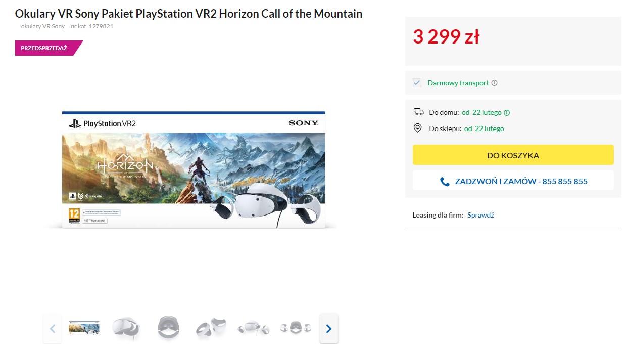 Konsolowe zestawy VR powinny więc w dzisiejszych czasach być tańsze… a przynajmniej tak nam się wydawało, bo oto właśnie na polski rynek zawitało Sony ze swoim PlayStation VR 2. W sieci RTV Euro AGD możemy zamówić już zestaw w ramach przedsprzedaży za 2999 złotych w wersji podstawowej i 3299 zł w wersji z tytułem ekskluzywnym Horizon Call of the Mountain. Dodatkowe 249 złotych wydrze Wam z portfela dedykowana stacja ładująca dla gogli.