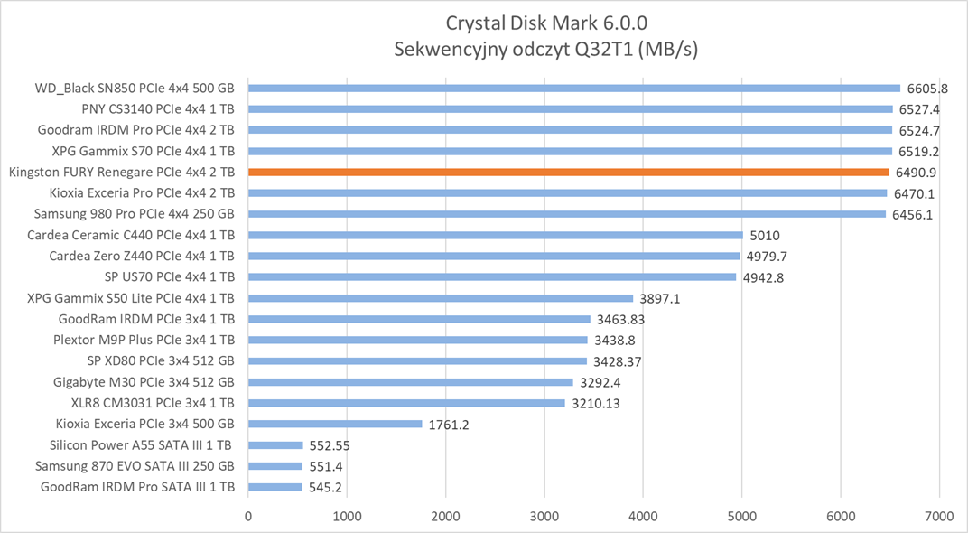 Test dysku Kingston FURY Renegade 2 TB – podsumowanie