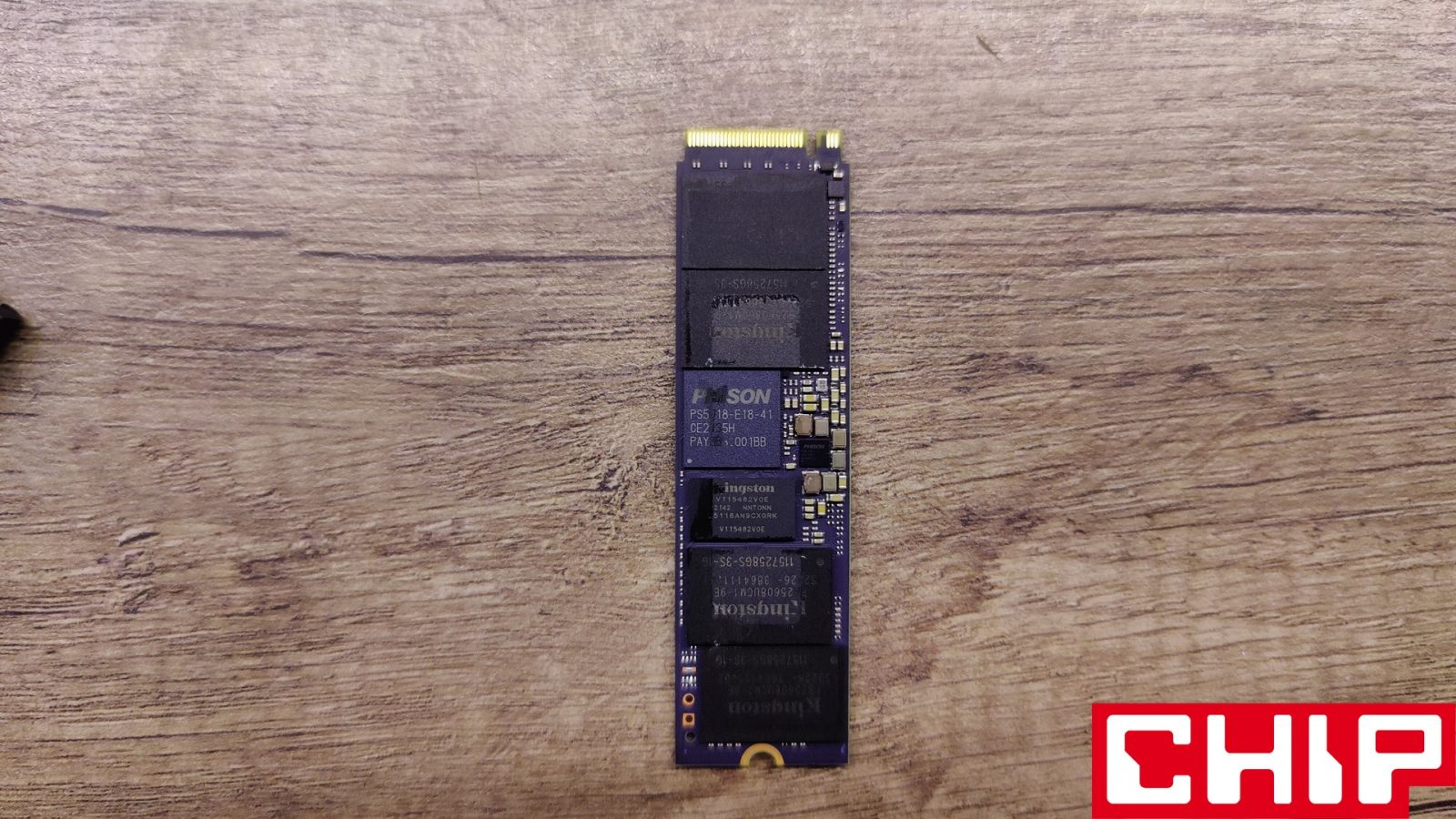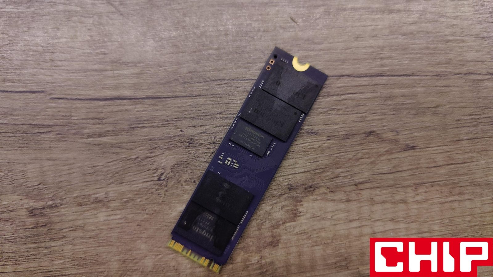 Pod radiatorem znajdziemy sporo układów, bo poza renomowanym 8-kanałowym kontrolerem zobaczymy aż osiem układów pamięci Flash, które mogą wydawać się dziełem Kingston, ale w praktyce to tylko rebrand 176-warstwowych kości 3D TLC Microna. Oprócz nich znajdziemy też dwa 1-GB kości DRAM wyprodukowane przez Kingston o prędkości transferu rzędu 2666 Mb/s.