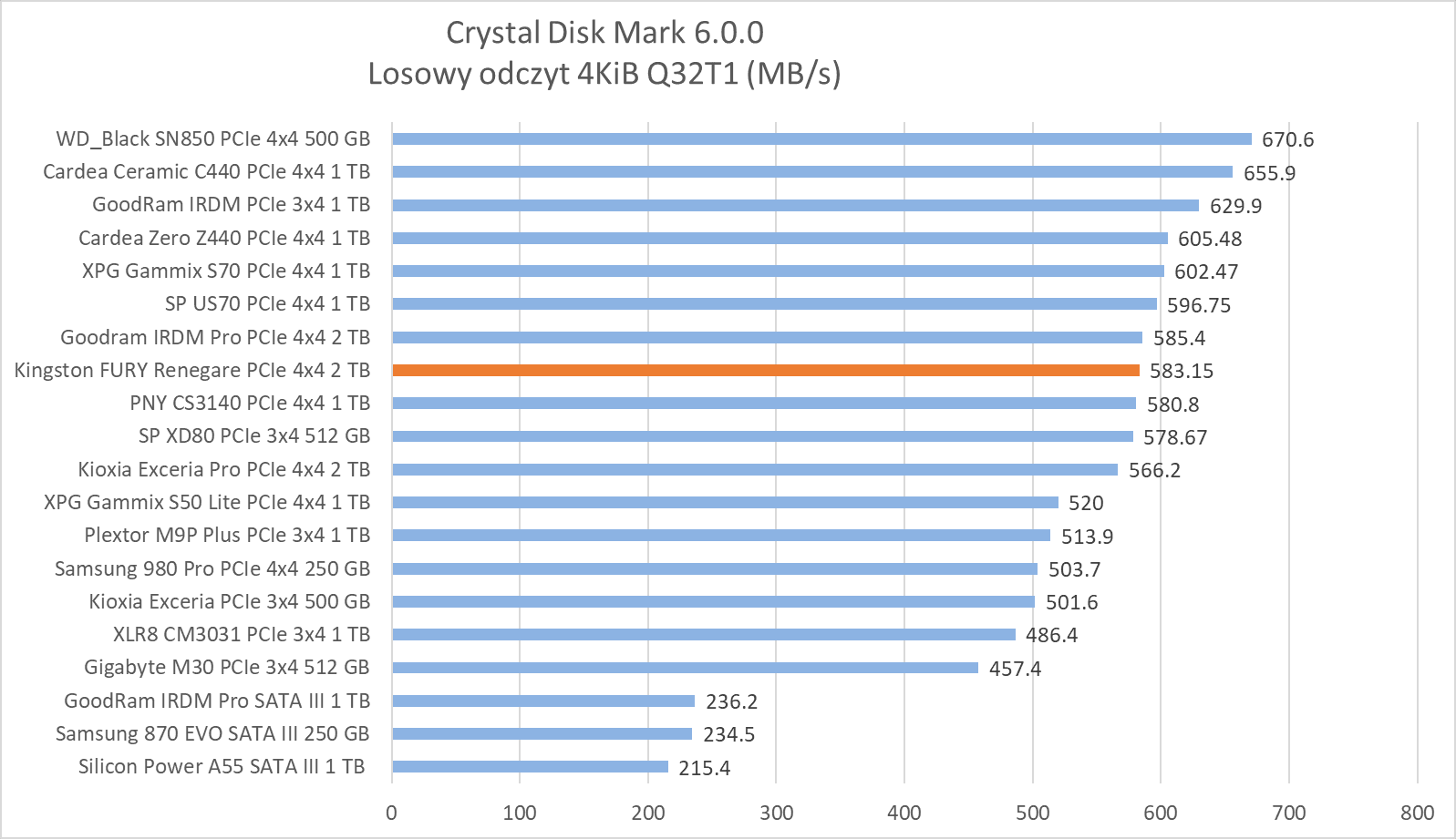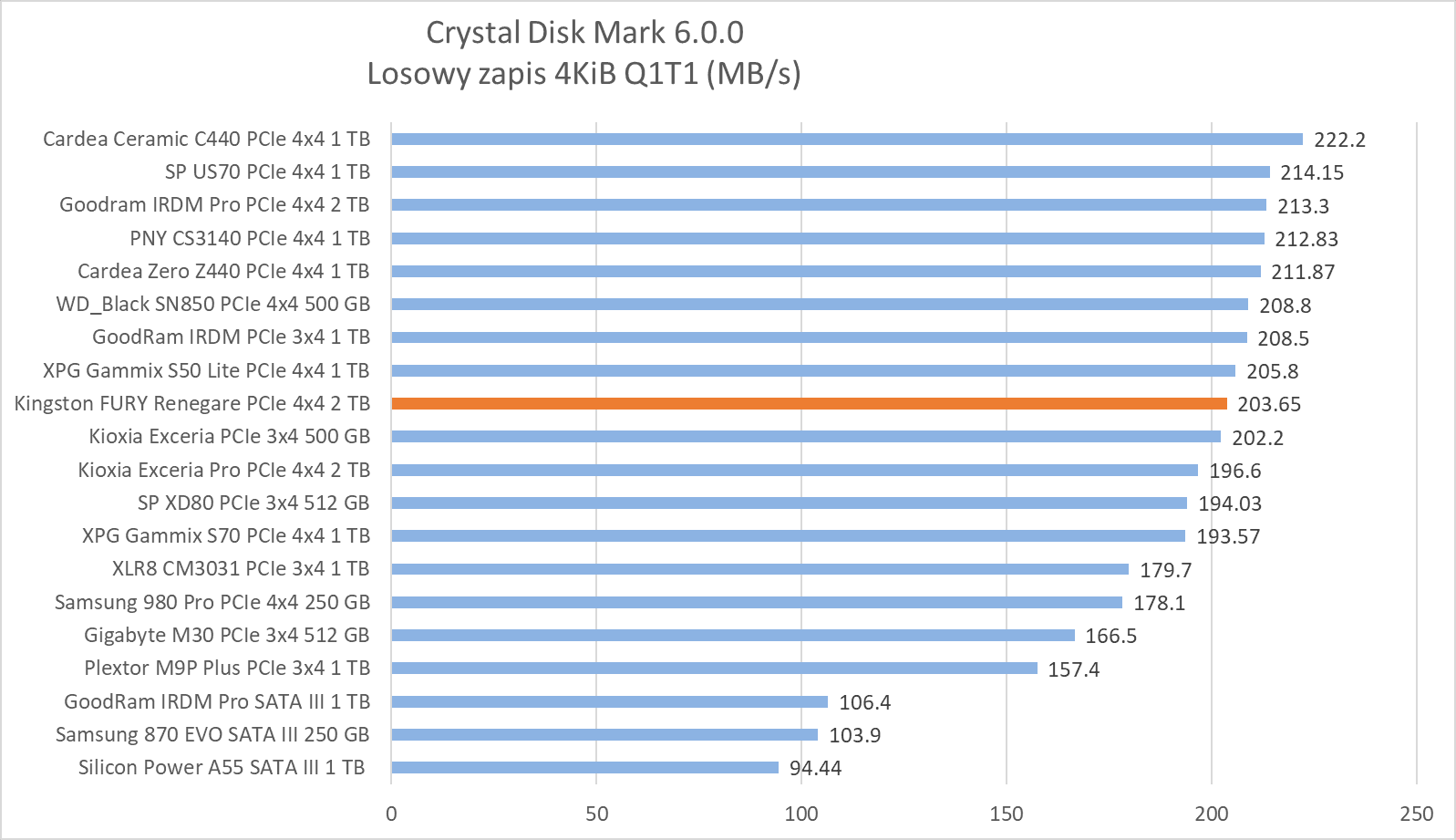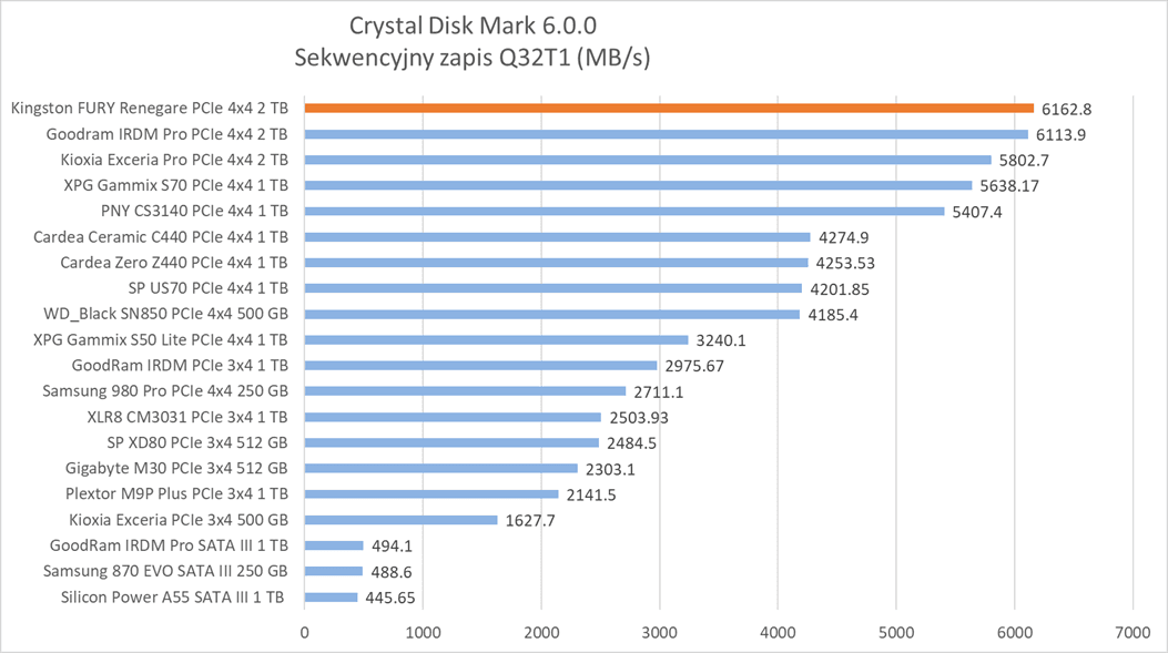 Wzorowy w zapisie sekwencyjnym i radzący sobie świetnie w odczycie – tak w skrócie wypada Kingston FURY Renegade 2 TB w teście syntetycznym. Co nam to mówi? Przede wszystkim to, że swój potencjał udowodni w testach praktycznych.