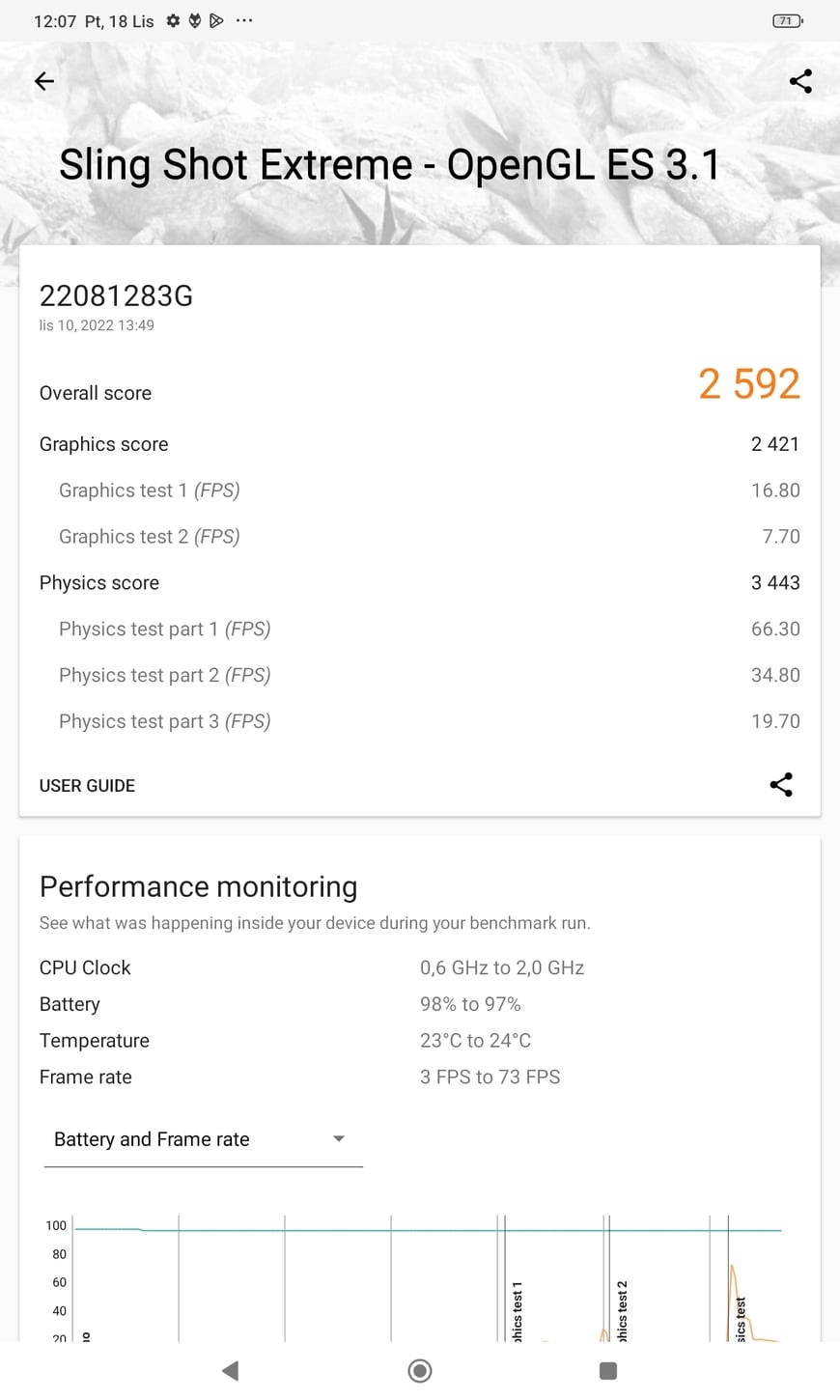 - 3D Mark (test Sling Shot Extreme) – 2592 pkt