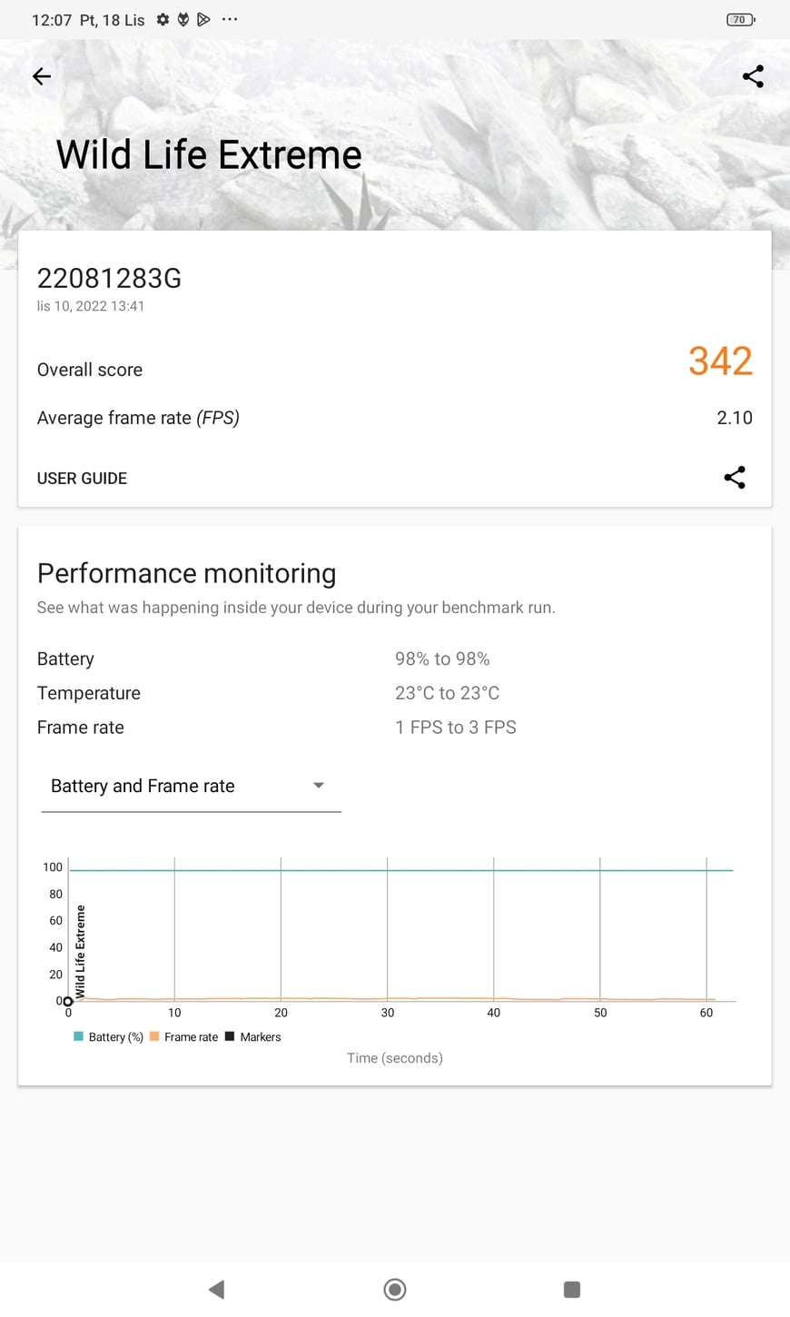 - 3D Mark (test Wild Life Extreme) – 342 pkt