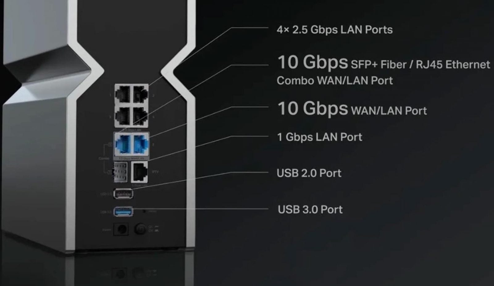 Wchodząc w szczegóły specyfikacji, BE900 zapewnia możliwość łączenia połączenia 10Gb SFP+Fiber WAN oraz dodatkowy 10Gb port WAN, który może być również używany jako połączenie LAN. Poza tym domową sieć można oprzeć o cztery dostępne porty Ethernet 2,5Gb. cztery porty ethernet 2.5G, aby zbudować sobie szybką sieć przewodową i w razie potrzeby korzystać z OpenVPN i prywatnej sieci dla urządzeń Internetu Rzeczy.