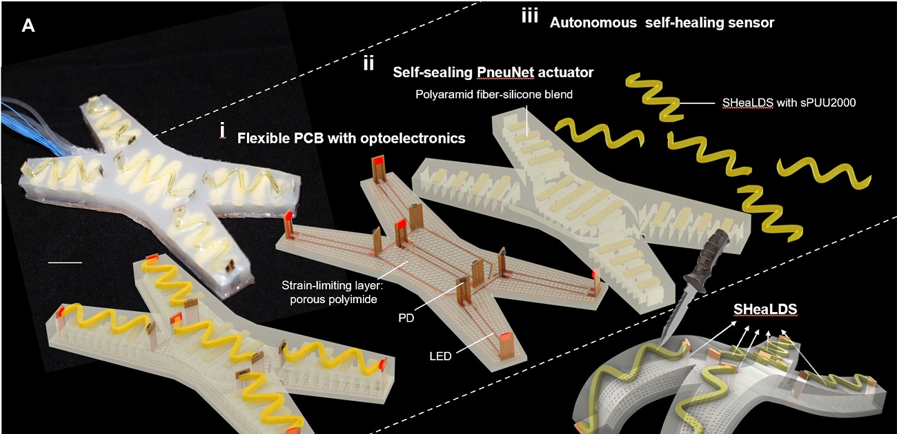 Kiedy jego strumień przelatuje przez mechaniczne ciało robota, zaczyna on falować i podnosić się na swoich czterech kończynach. Istotny element budowy stanowi wierzchnia warstwa urządzenia, pokryta samonaprawiającymi się czujnikami. Ich zadaniem jest śledzenie ruchów całej konstrukcji, a jeśli dojdzie do uszkodzenia któregoś z sensorów, to może się on zregenerować.