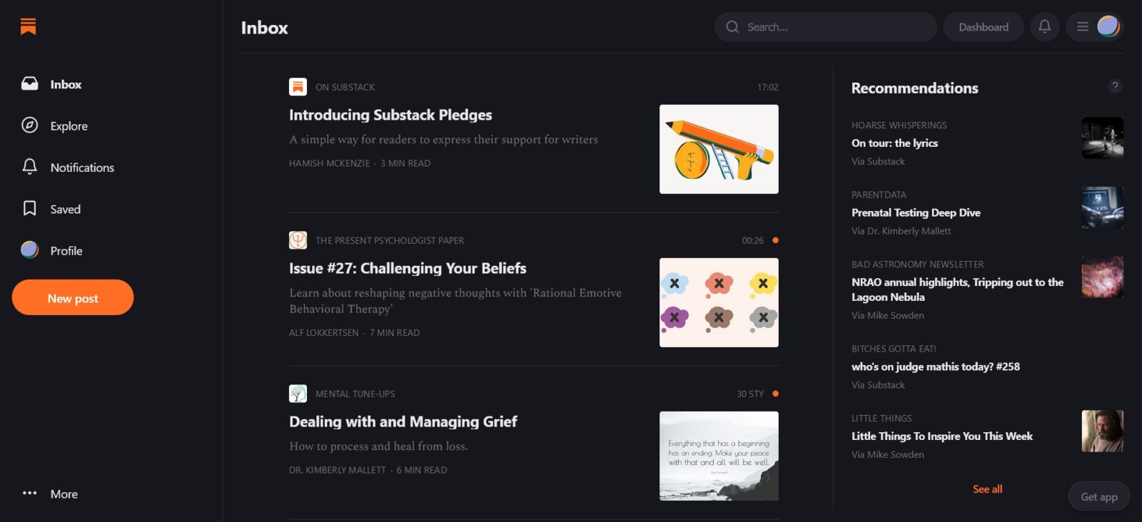 Pomysł miejsca stanowiącego bezpieczny azyl dla zaangażowanych twórców oraz kopalnię wartościowych treści dla czytelników powstał w 2017 roku w San Francisco. Zasada działania serwisu Substack jest banalnie prosta: to platforma, na której autorzy mogą publikować swoje treści (jak na zwykłym blogu), a czytelnicy dostają je w ramach darmowej lub płatnej subskrypcji (newsletter) na swoje skrzynki pocztowe. Z takiego abonamentu serwis potrąca dla siebie 10%, a reszta po odliczeniu kosztów obsługi transakcji (3%) trafia do twórców (w ich kieszeni zostaje 87%).