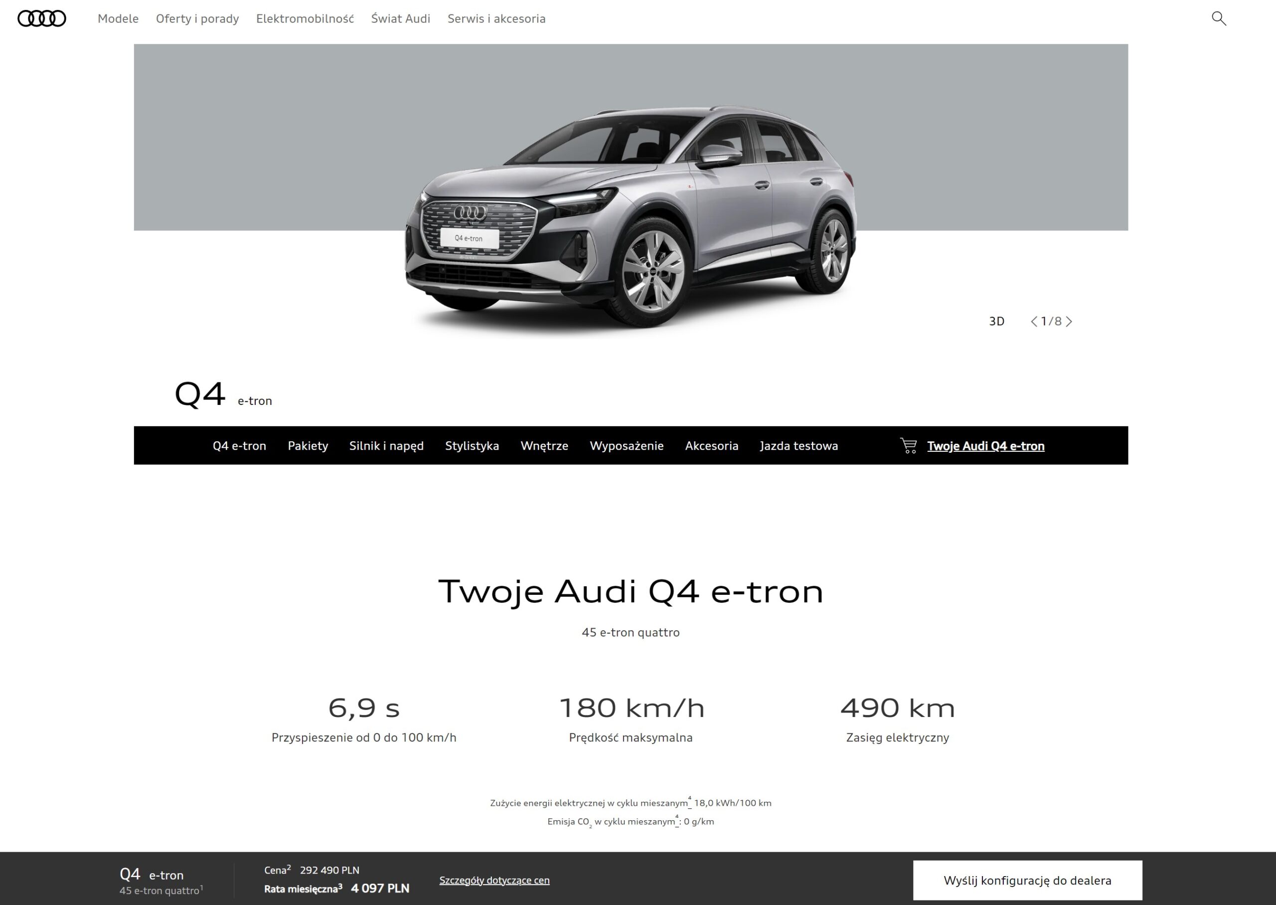 Niestety z autami premium jest tak, że producenci każą sobie dopłacać za absolutnie każdą bzdurę, która w autach „mainstreamowych” jest standardem. I tak skonfigurowanie Q4 e-tron do poziomu zbliżonego do reszty opisanych tu aut wywindowało cenę do… 292,5 tys. zł.