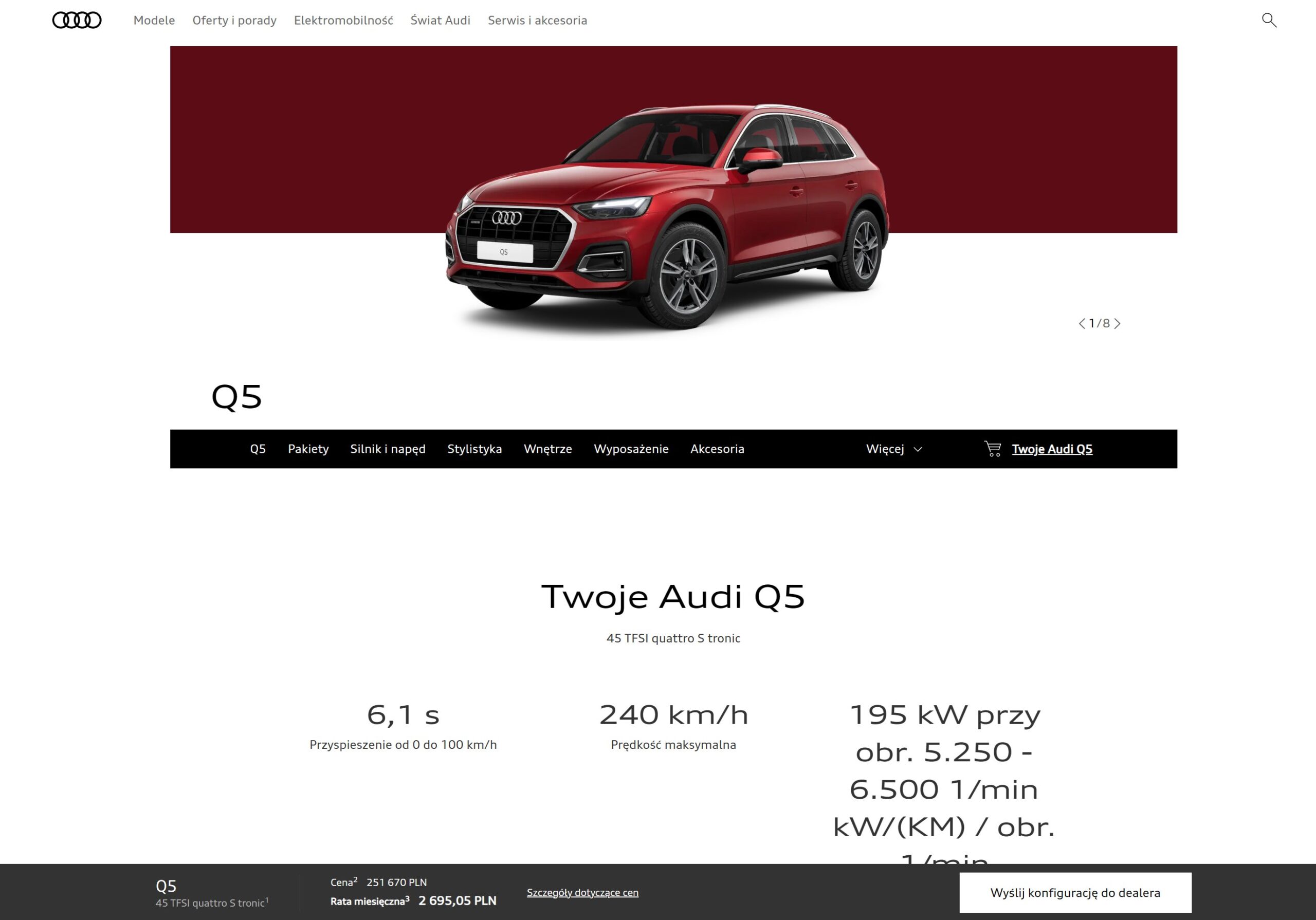 Tyle że nie można zrzucić winy na wysoką cenę na sam fakt tego, że mowa o aucie marki Audi. Bo porównywalne Q5, w wersji 45 TFSI quattro, kosztuje… nieco ponad 251 tys. zł. Do tego jest szybsze i nieco lepiej wyposażone.