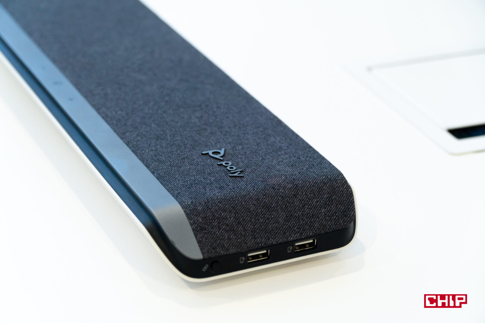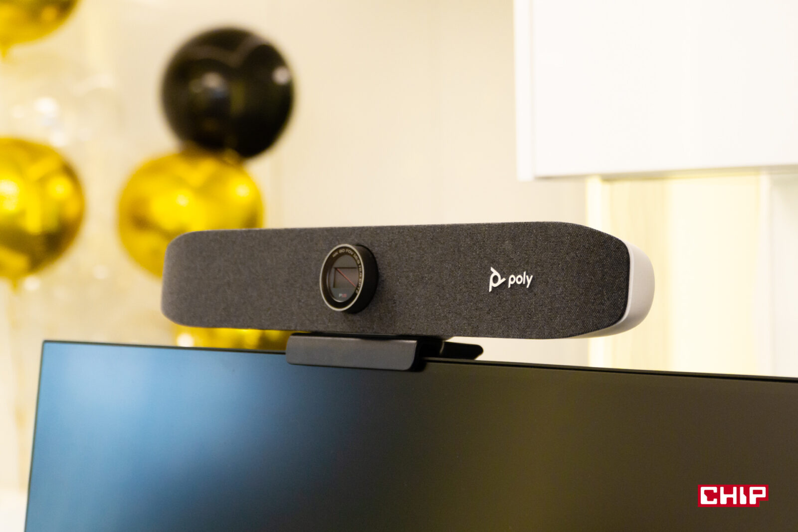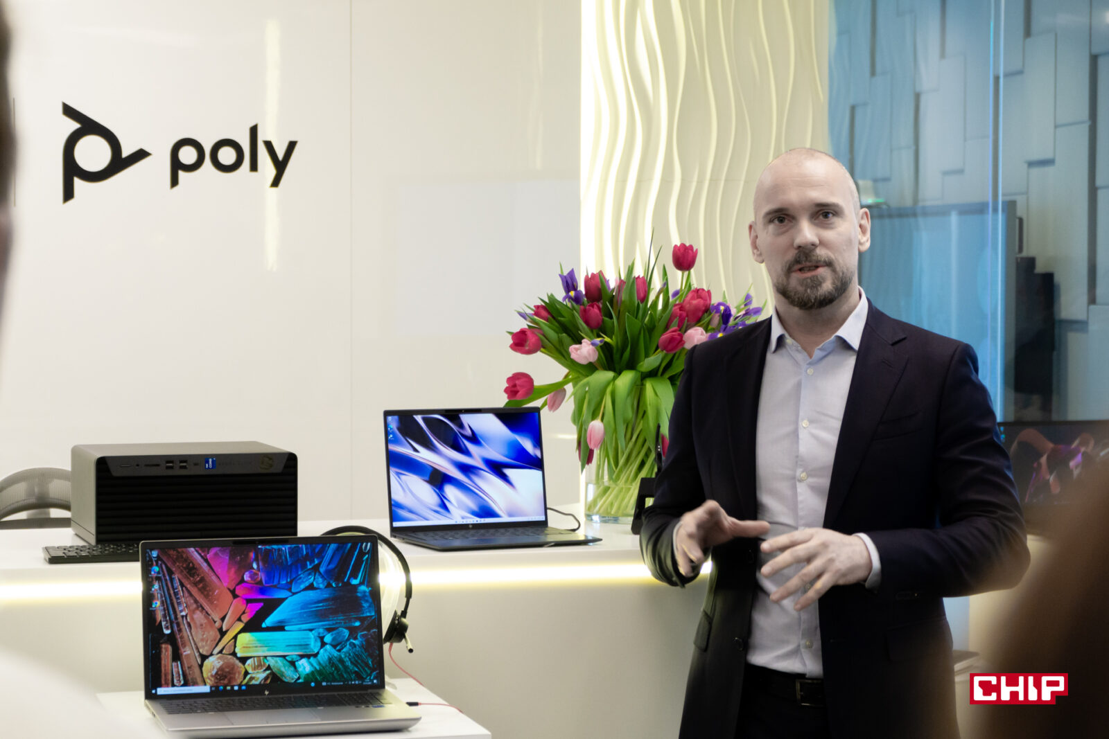 Dla każdej z powyższych grup w warszawskim biurze HP i Poly udało się zgromadzić ciekawe rozwiązania do pracy hybrydowej, dzięki którym być może uda się wyeliminować szereg problemów pojawiających się przy takich spotkaniach. Wśród nich znajdowały się m.in. kamery wyposażone w podwójne obiektywy: jeden prezentował ogólny widok sali zaś drugi był w stanie skierować się na osobę, która właśnie zabrała głos.