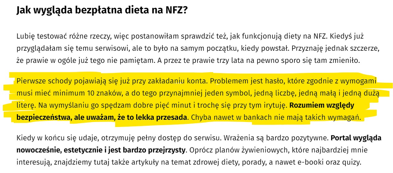 Wracając jednak do samego tekstu. Autorka pisze, jak to natrafiła na problem polegający na konieczności wymyślenia 10-znakowego hasła do konta: