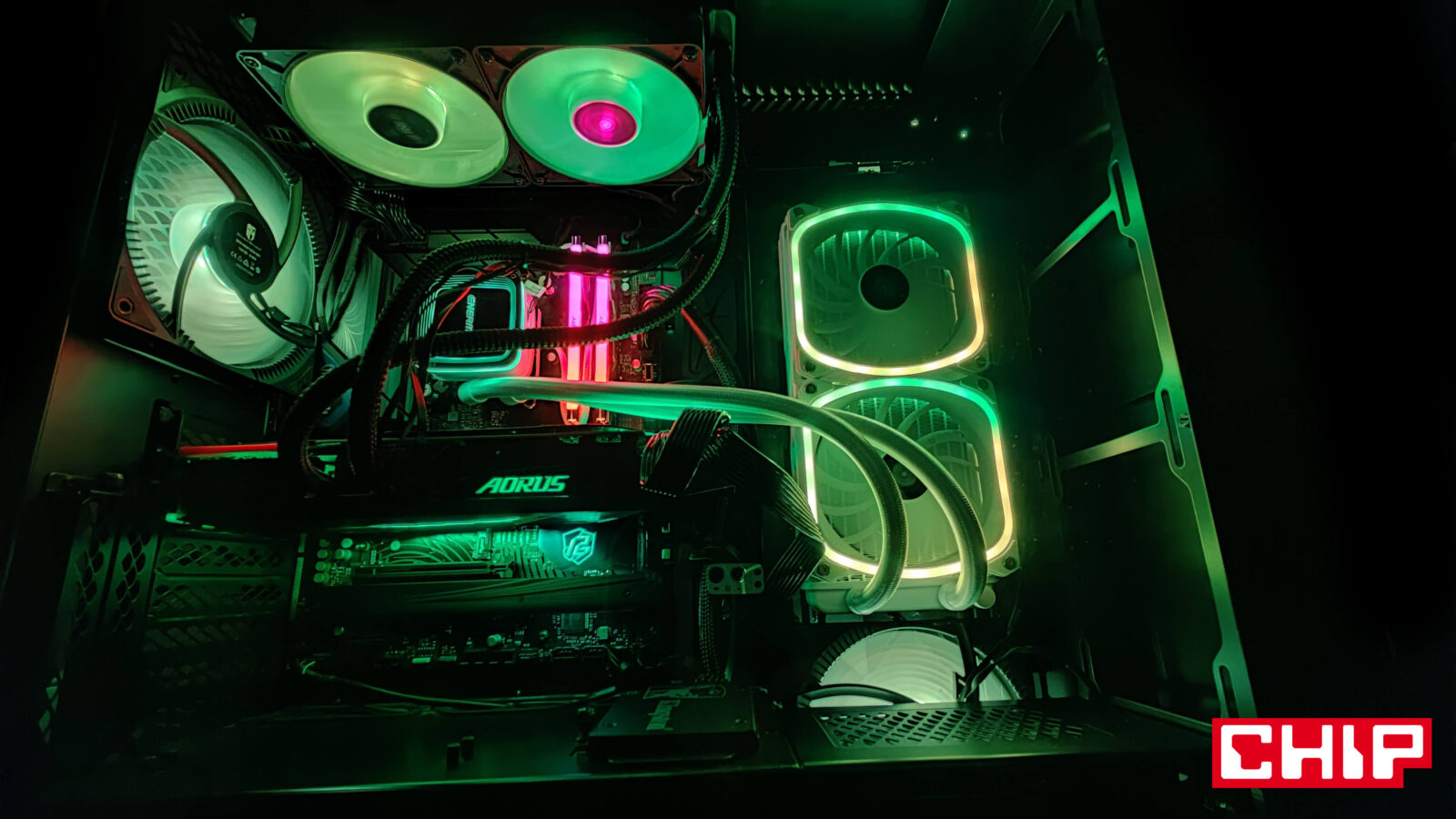 To drugie ustawienie jest stosunkowo często ukazywane na zdjęciach producentów obudów i samych układów AiO, co niespecjalnie mnie dziwi, jako że otwory wentylacyjne na przodzie ma praktycznie każda obudowa, a zasięg przewodów z płynem chłodzącym pozwala wyłącznie na takie właśnie ustawienie. Bardzo dobre, ale nie idealne. Pozostaje więc pytanie – jak ustawiać chłodnice tak, aby miało to najwięcej sensu? W większości przypadków sprawa jest prosta.