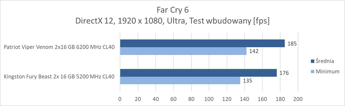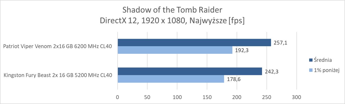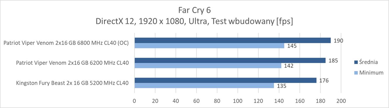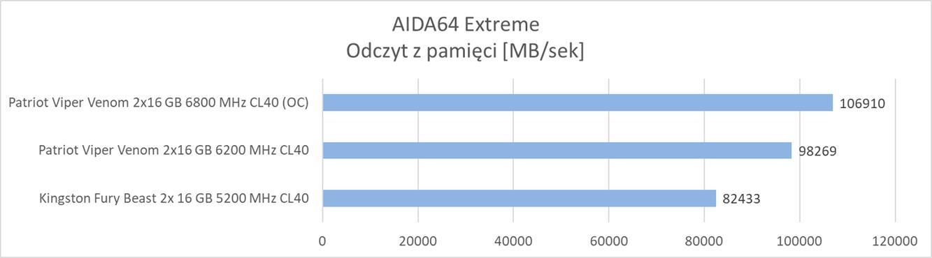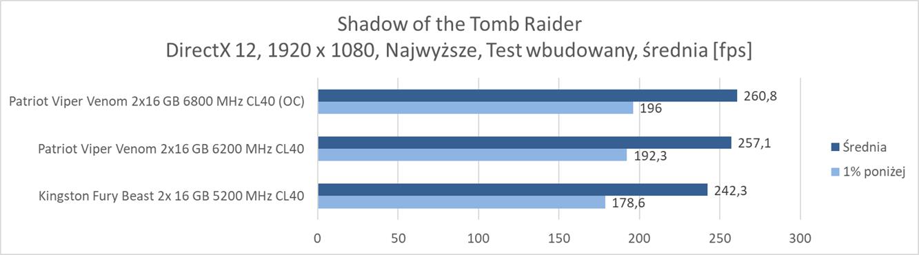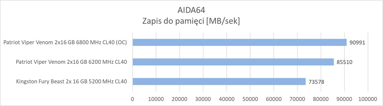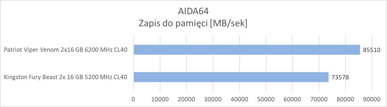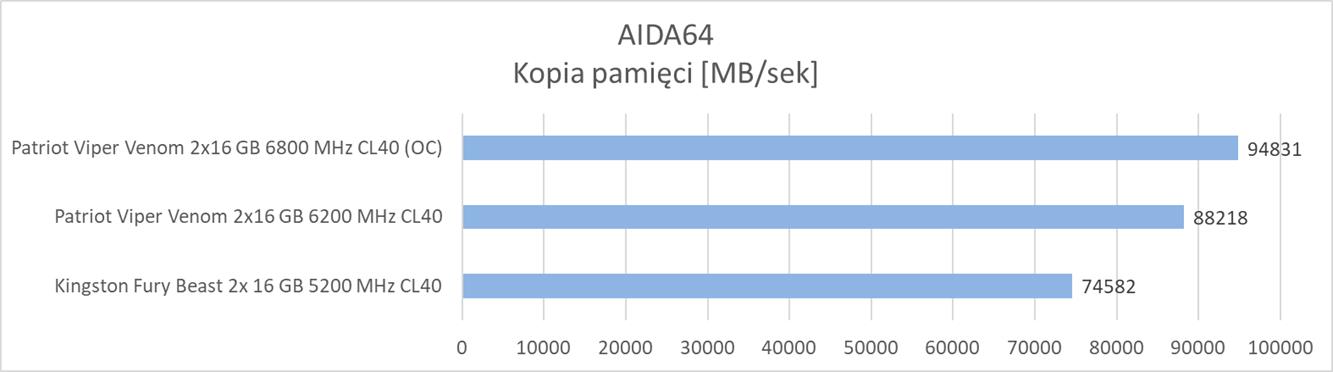 Patriot Viper Venom 2×16 GB 6200 MHz CL40 to dosyć tanie kości, które kupicie za ok. 850 zł. Nie znalazłem w sklepach niczego tańszego o taktowaniu 6200 MHz, choć trochę droższe (ok. 950 zł) mają niższe opóźnienia (lub większe taktowanie). W tej cenie zdecydowanie jednak polecam zakup testowanych modułów.