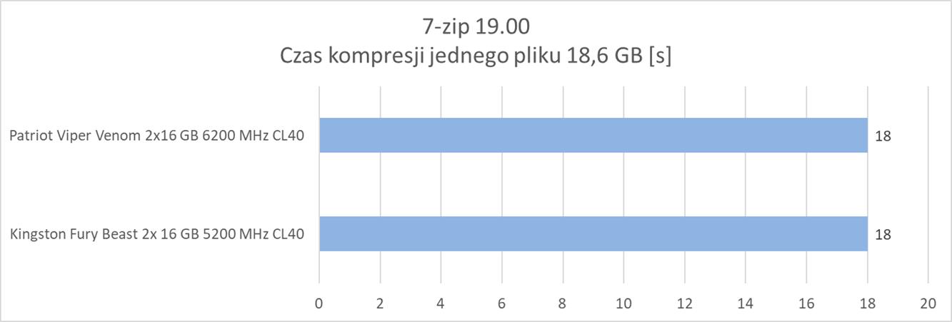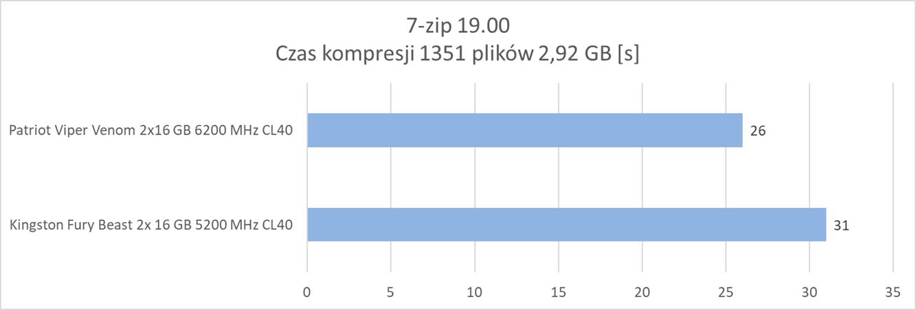 W programach przewaga nad znacznie wolniejszymi Kingstonami nie jest może wybitnie duża w większości przypadków. Największe różnice widać przy kompresji paczki plików czy w AIDA64, poza tym wyniki są dosyć bliskie. Natomiast w grach widać już znaczny zysk klatek na sekundę we wszystkich testowanych tytułach. W szczególności więc do tych zastosowań warto zainwestować w szybsze kości.