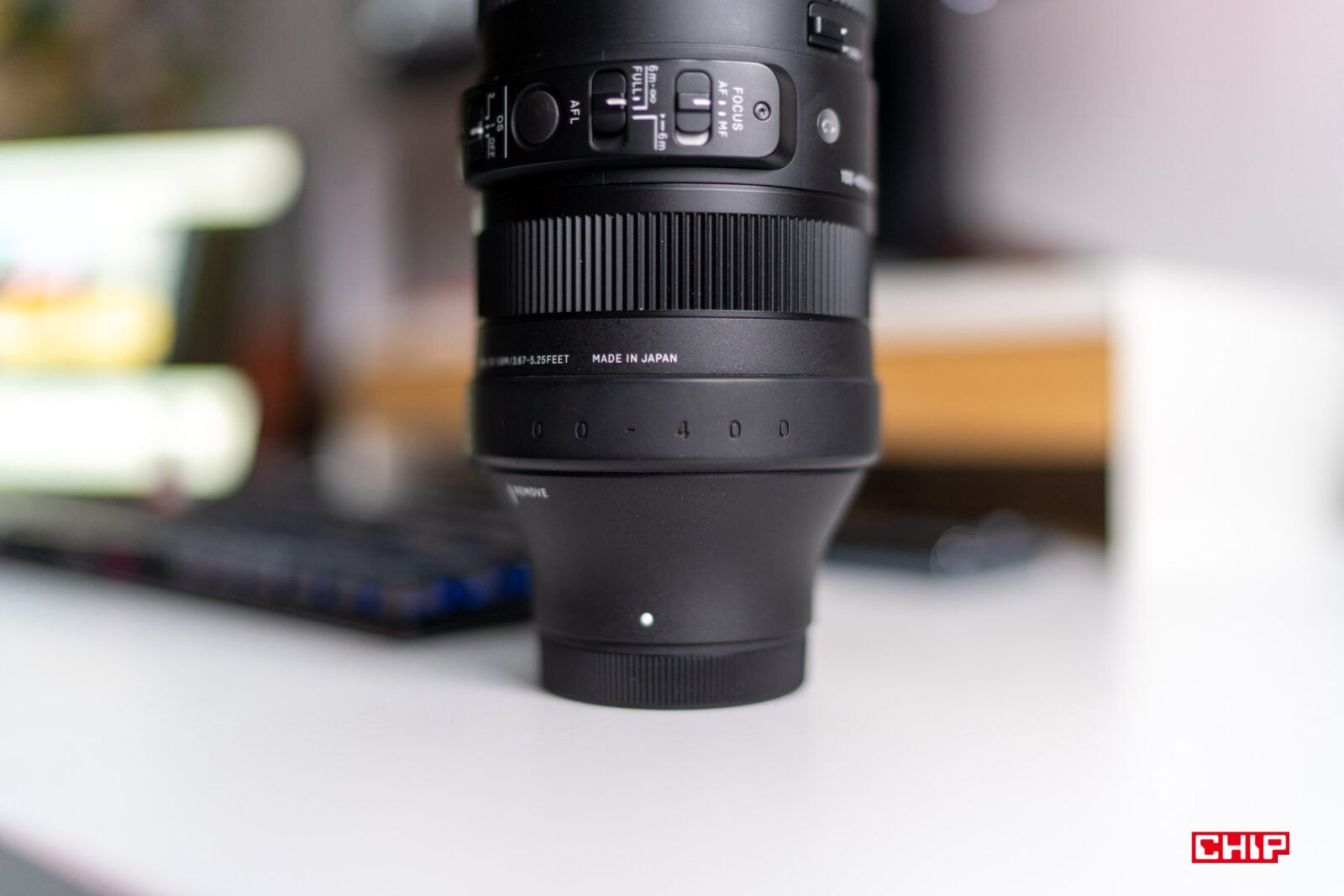 Nie kojarzę zbyt wielu obiektywów, które miałyby tak dziwny kształt jak Sigma 100-400 mm f/5-6.3 DG DN OS. Jak większość obiektywów Sigmy z mocowaniem Sony E, tuż przy bagnecie wariant 100-400 mm jest wyraźnie cieńszy, ale miejsce zwężenia nie jest tak “kanciaste” jak w obiektywach innych producentów, chociażby Sony czy Tamrona.