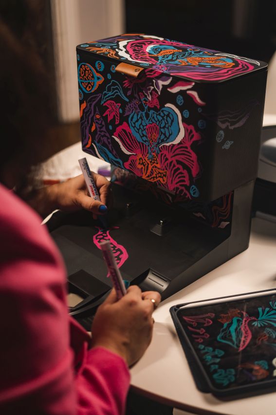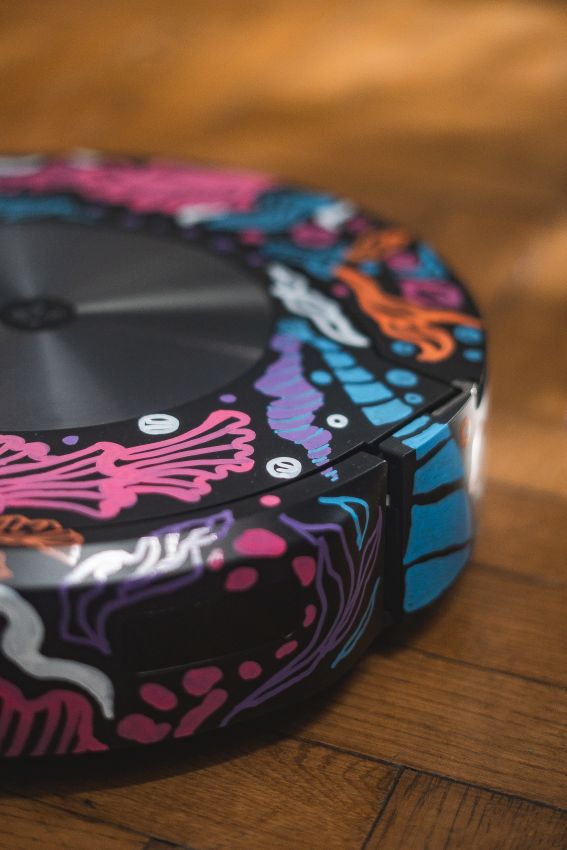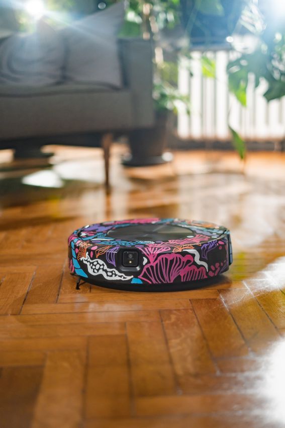 To już kolejny raz, kiedy Roomba trafia na aukcję Wielkiej Orkiestry Świątecznej Pomocy. W poprzednich latach w projekt zaangażowali się kolejno Mateusz Suda, Anna Halarewicz i Oskar Zięta, natomiast w tym roku do współpracy zaproszono Barbarę Rochowczyk, której zadaniem było nadanie urządzeniu unikalnego charakteru. Tak też się stało, bo Roomba, którą można wylicytować, wygląda naprawdę nietuzinkowo dzięki pokrywającej ją grafice. Ta znalazła się nawet na stacji dokującej, więc całość wygląda świetnie.