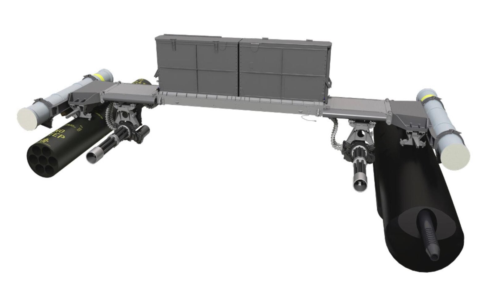 Pakiet Ordnance Mounting System sprowadza się do płyty zamontowanej mniej więcej w tylnej kabinie śmigłowca, która zapewnia wspomniane pylony do montażu uzbrojenia na zewnątrz helikoptera oraz miejsce na nawet 3000 sztuk amunicji kalibru 7,62 mm. Jakoś jednak tymi systemami broni trzeba zarządzać i za to właśnie odpowiada m.in. system Wescam MX-10, zapewniający też m.in. możliwość celowania. Co ciekawe, Bell zadbał też o odpowiednie systemy ochronne, bo o system wyrzucania emitujących ciepło flar, które są nieocenione w momencie, kiedy w stronę helikoptera wystrzelony zostanie pocisk z głowicą termiczną, a więc tą naprowadzaną na źródło ciepła.