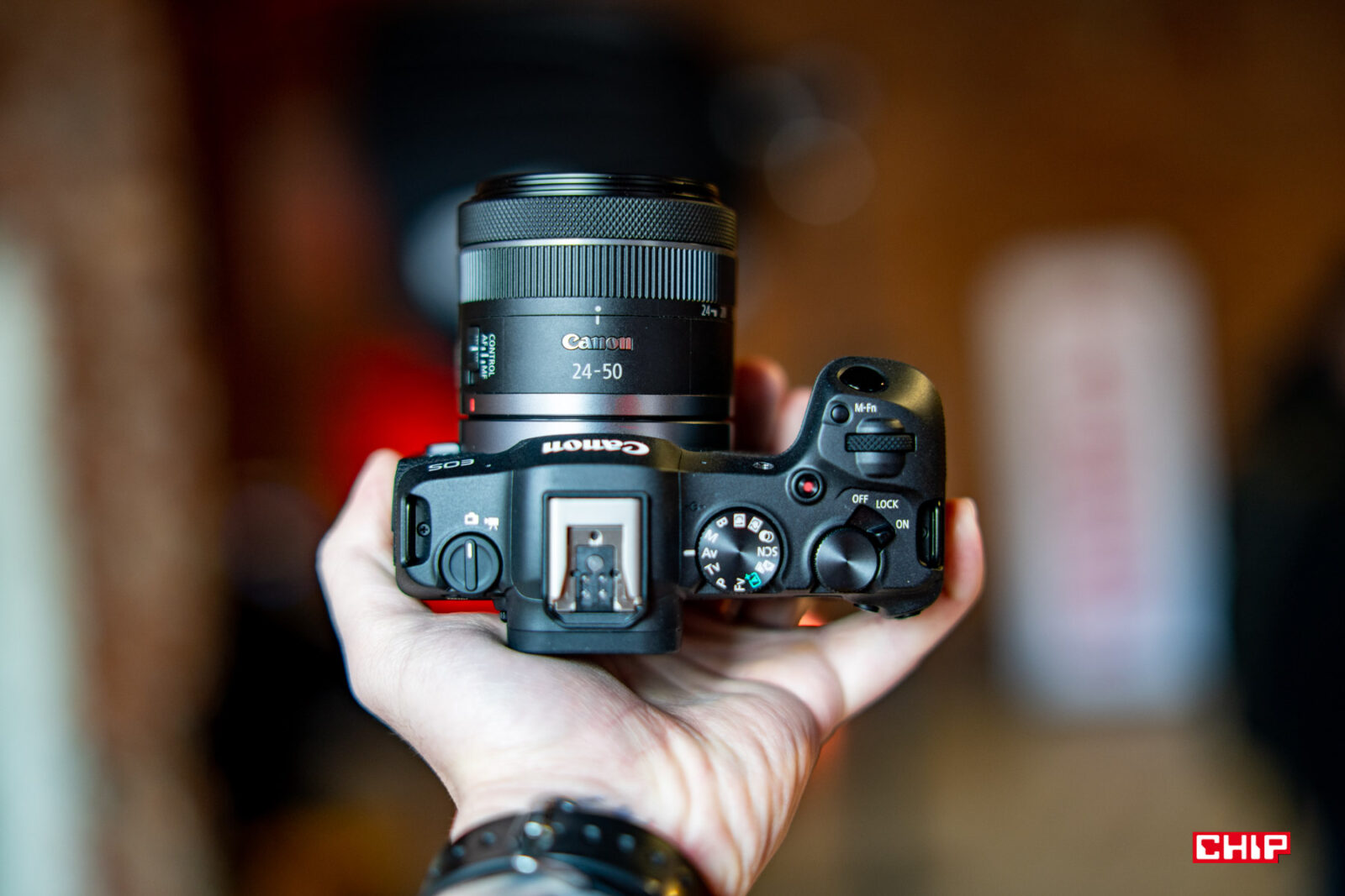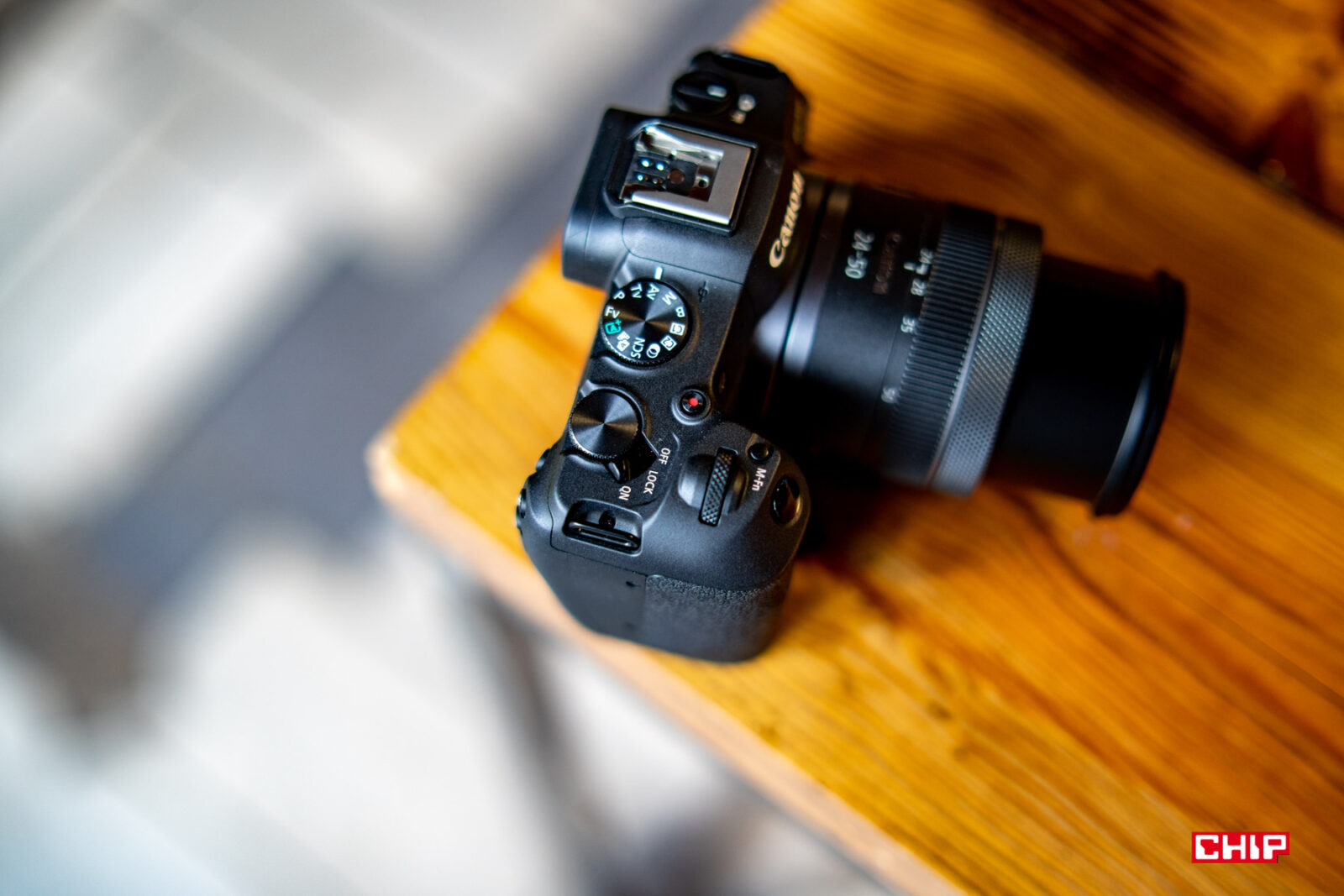 Układ przycisków jest podobny do tego, który znamy z EOS-a R. Nie znajdziemy tu dżojstika, a zamiast obracanego pokrętła, jak w wyższych modelach z serii, mamy tu prosty d-pad. Pojawiły się za to nowe tryby fotografowania na kole wyboru, przełącznik foto/video i nowy włącznik z blokadą ostrości. To elementy, które widzieliśmy ostatnio w R6 II.
