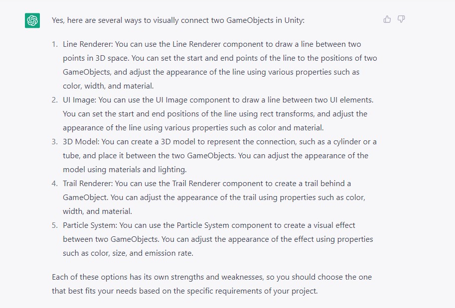 Chciałem znaleźć sposób na wizualne połączenie dwóch postaci na mapie. Bam, dostałem listę potencjalnych rozwiązań… o których doskonale wiedziałem i które analizowałem przed zadaniem pytania chatbotowi. Tyle tylko, że żadne zaproponowane rozwiązanie nie spełniało wymagań mojego scenariusza i dopytywanie ChatGPT na niewiele się zdało, więc dopiero przegrzebywanie sieci pozwoliło mi znaleźć to, czego szukałem.