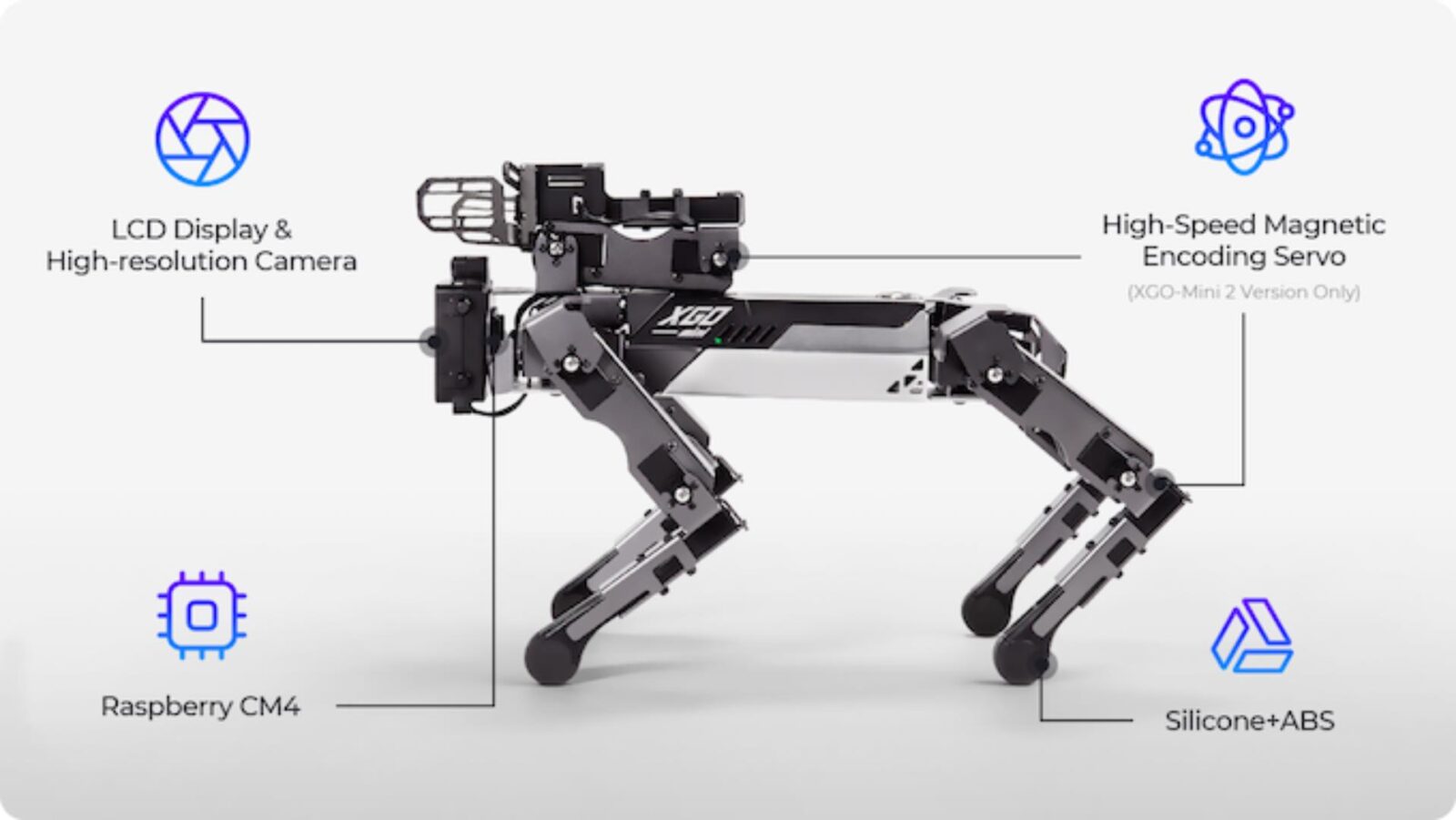 Wedle producenta XGO 2 jest pierwszym na świecie robotycznym psem z ramieniem, co znacząco rozszerza jego funkcjonalność i pozwala zgłębiać tajniki zrobotyzowanych chwytaków w domowym zaciszu. Firma jednocześnie obiecuje, że jej robot będzie łatwy w montażu oraz użyciu, a na dodatek zaoferuje szeroki zakres opcji programowania w celu dostosowania jego zachowania. Oprócz wspomnianego ramienia, producent wyposażył XGO 2 w komputer Raspberry Pi CM4, wyświetlacz, szereg czujników oraz kamerę optyczną.